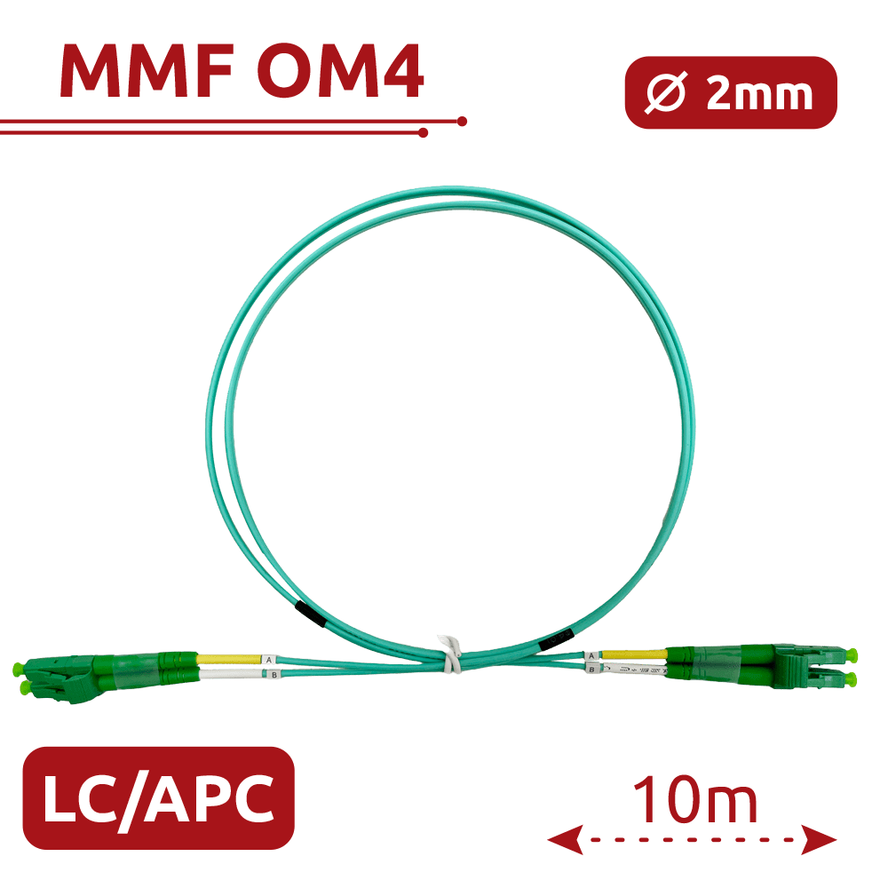 Cabo de ligação de fibra ótica – Fibra multimodo OM4 – Conector LC APC duplex – Comprimento 10m – Coberta LSZH – Compatibilidade genérica
