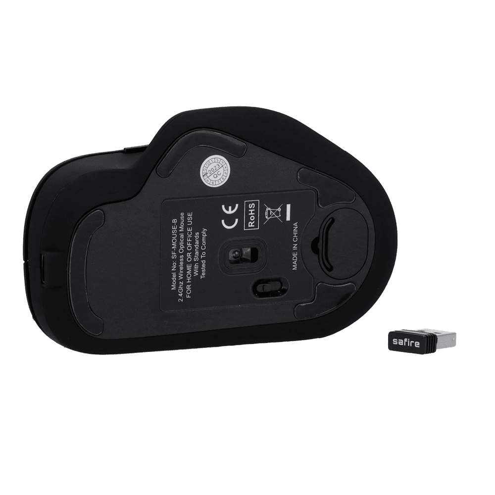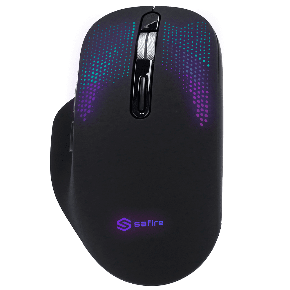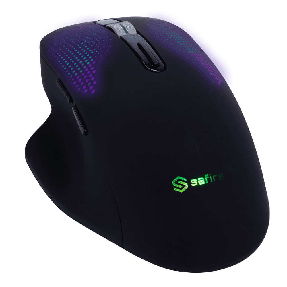 Rato Óptico Safire sem fios – Frequência: 2.4GHz RF – Botões laterais para navegação rápida – Roda de deslocação pré e pós-visualização – Definição da resolução DPI
