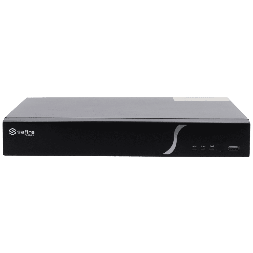 Safire Smart – Gravador NVR para câmaras IP da gama B2. – 8CH vídeo / Compressão H.265 + – Resolução até 8 Mpx / Largura de banda 80Mbps – Saída HDMI 4K e VGA / 1HDD. – Deteção de rostos / Pesquisa inteligente