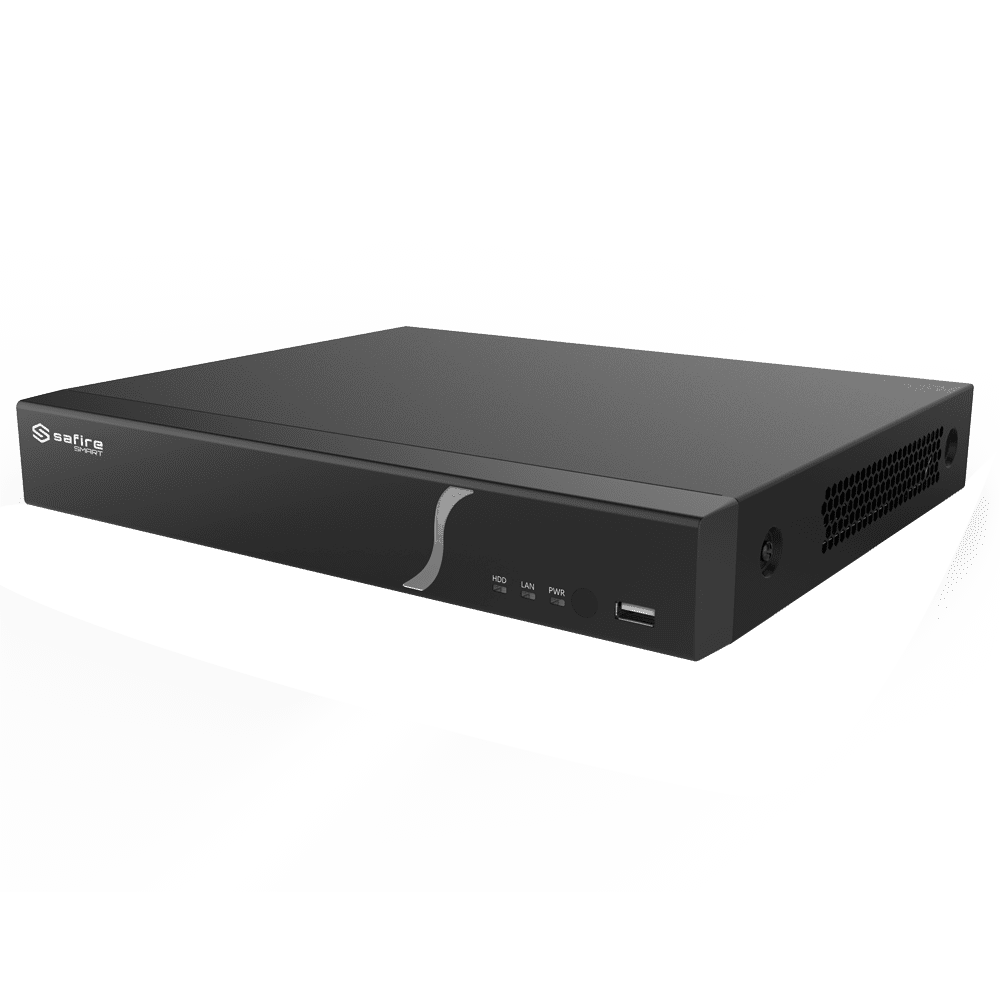 Safire Smart – Gravador NVR para câmaras IP da gama B2. – 8CH vídeo / Compressão H.265S / 1HDD – Resolução até 12Mpx / Largura de banda 80Mbps – HDMI 4K e VGA / Dewarping Fisheye – Reconhecimento facial, metadados de vídeo