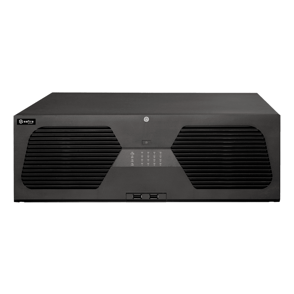 Safire Smart – Gravador NVR para câmaras IP da gama A3. – 128CH vídeo / Compressão H.265S / 8HDD – Resolução até 16Mpx / Largura de banda 768Mbps – HDMI até 8K e VGA / Dewarping Fisheye – Reconhecimento facial, metadados de vídeo
