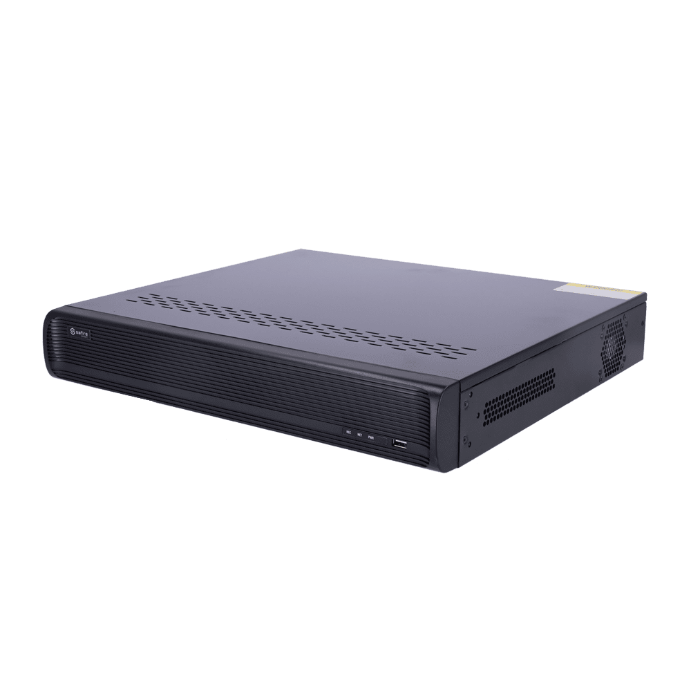 Safire Smart – Gravador NVR para câmaras IP da gama B2. – 16CH Portas PoE / Compressão H.265S / 4HDD – Resolução até 12Mpx / Largura de banda 160Mbps – HDMI 4K e VGA / Dewarping Fisheye – Reconhecimento facial, metadados de vídeo