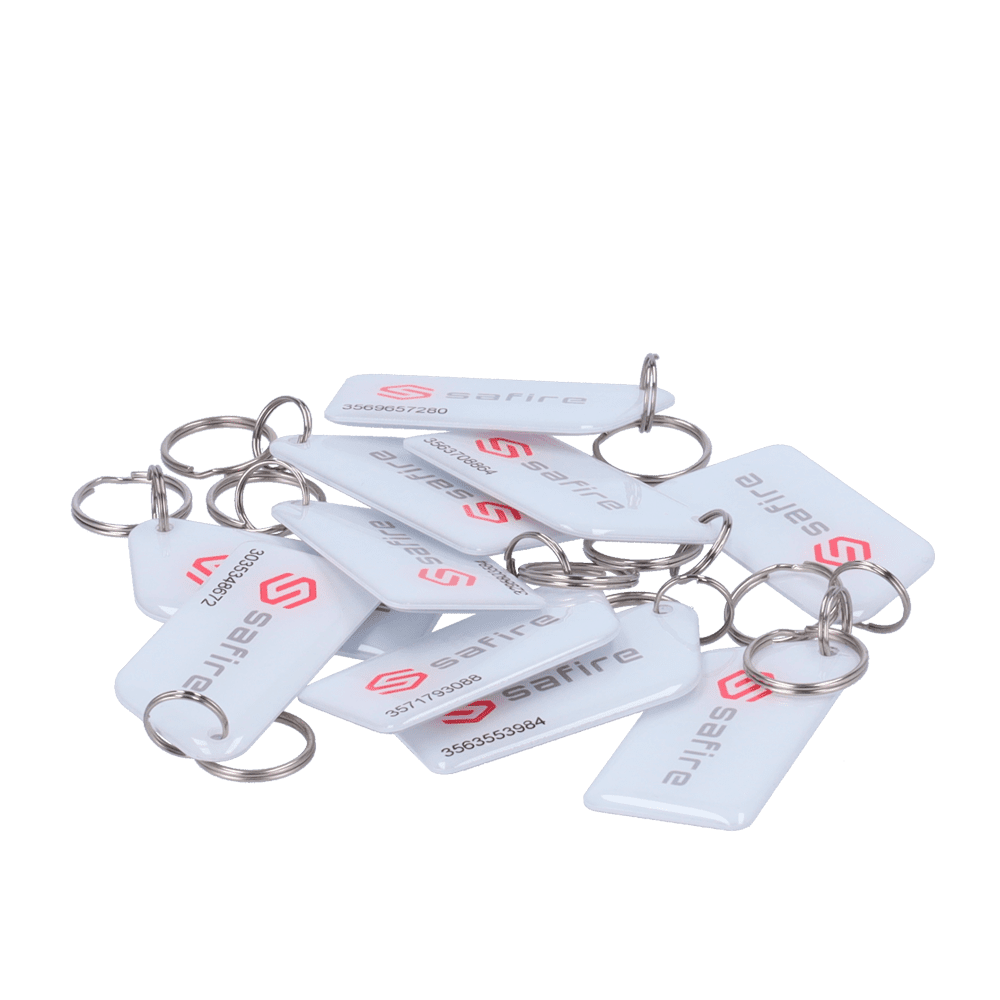 Porta-chaves TAG de proximidade numerado – ID por radiofrequência – EM passivo | Resina epóxi brilhante – Baixa freqüência 125 kHz – Dimensões: 56 (An) x 28 (Al) mm – Saco de 10 unidades