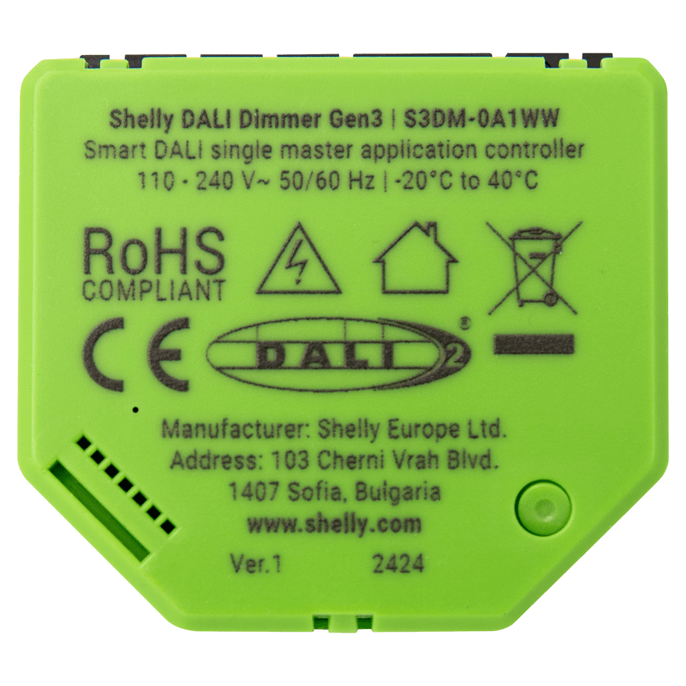 Shelly DALI Dimmer Gen3 – WiFi 2.4 GHz IEEE802.11 b/g/n – Bluetooth – Regulador de intensidade de iluminação DALI – Suporta 110-240 V – Efeitos predefinidos – Compatível com Alexa e Google