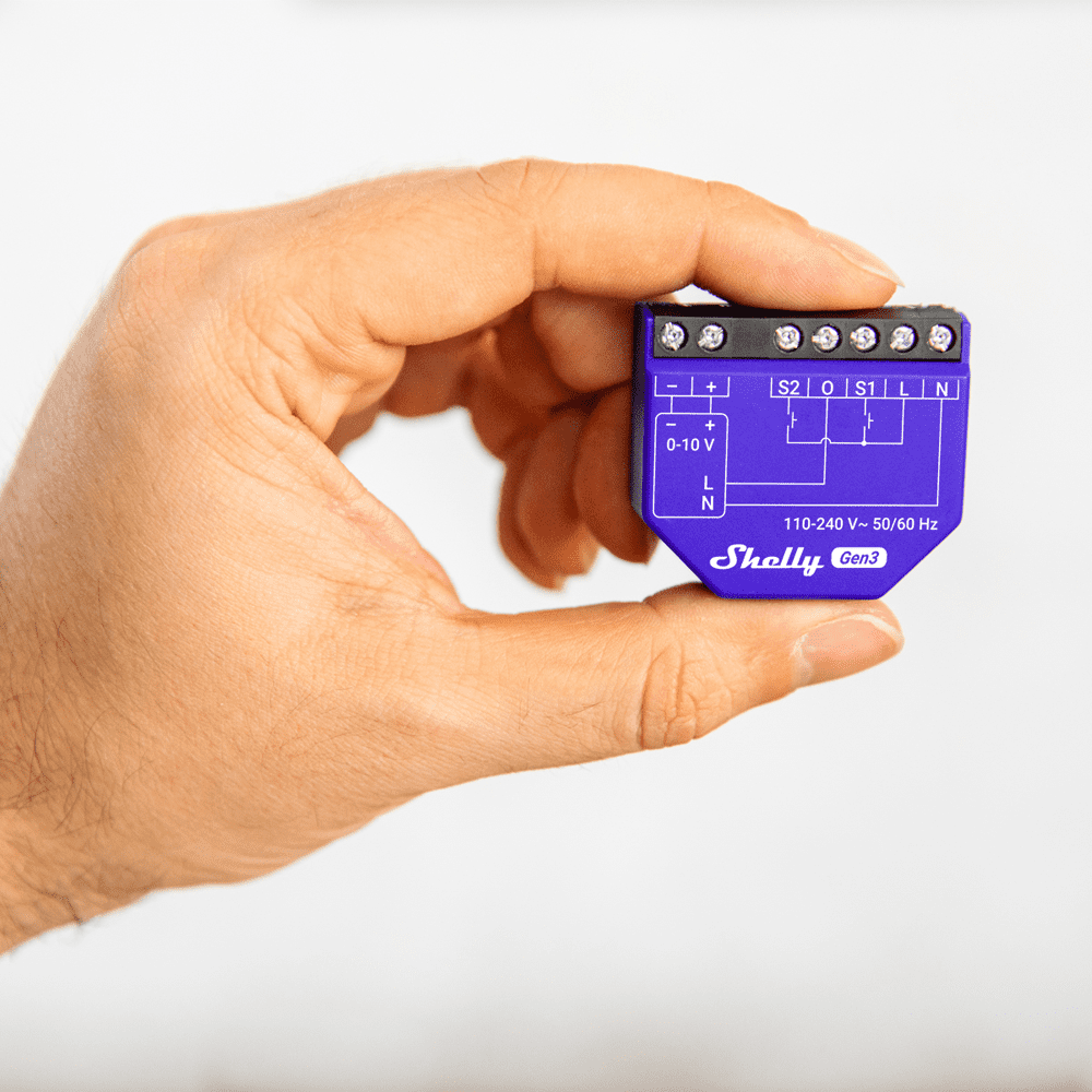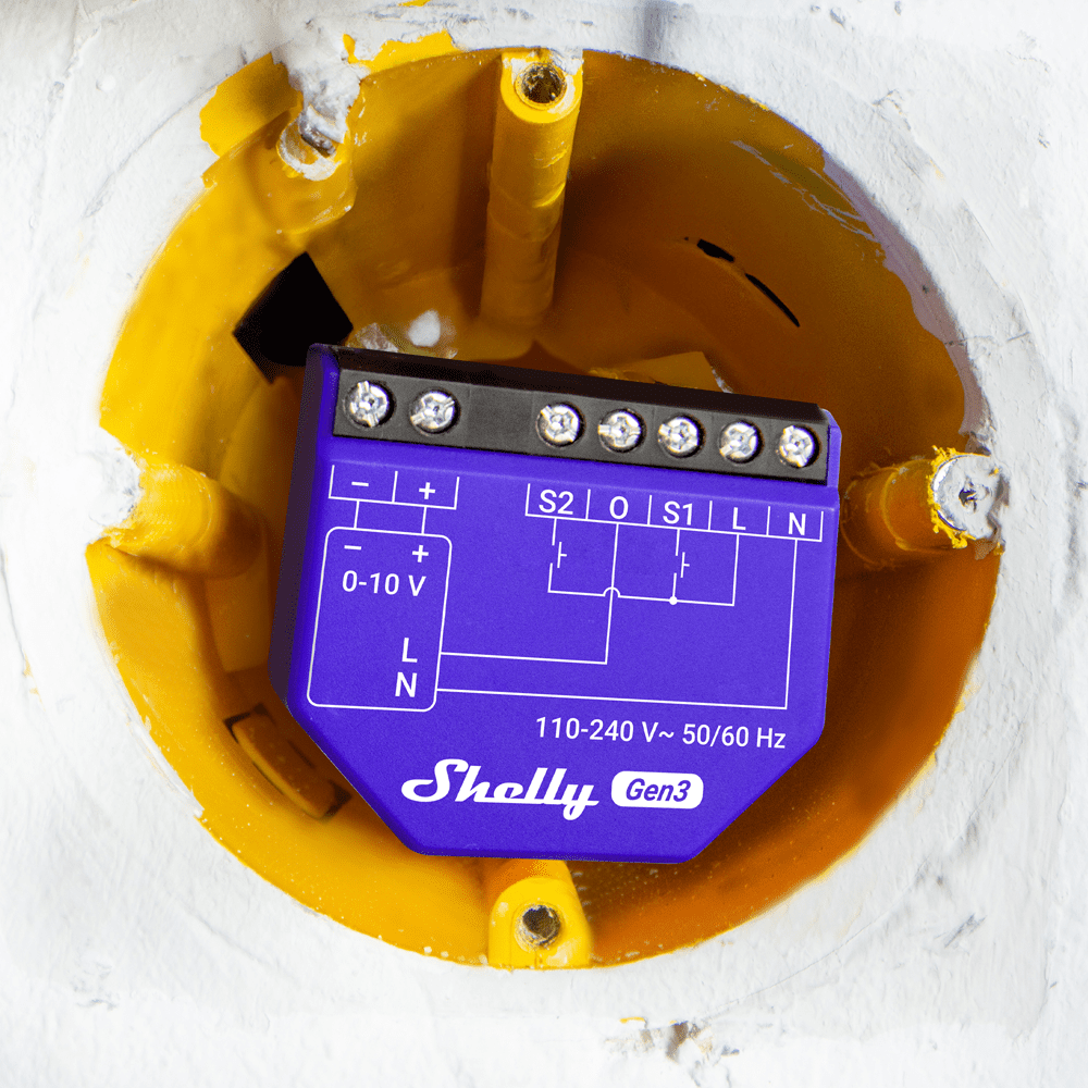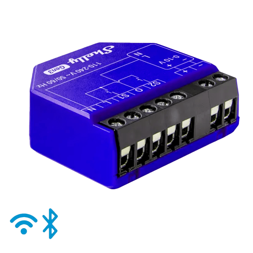 Shelly Dimmer 0/1-10V PM Gen3 – WiFi 2.4 GHz IEEE802.11 b/g/n – Bluetooth – Regulador para luzes, motores e válvulas – Suporta 0-10 V e 1-10 V – Efeitos predefinidos – Compatível com Alexa e Google