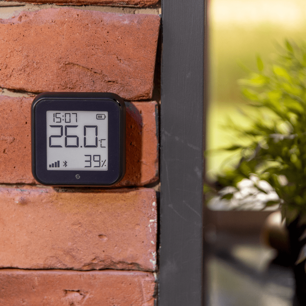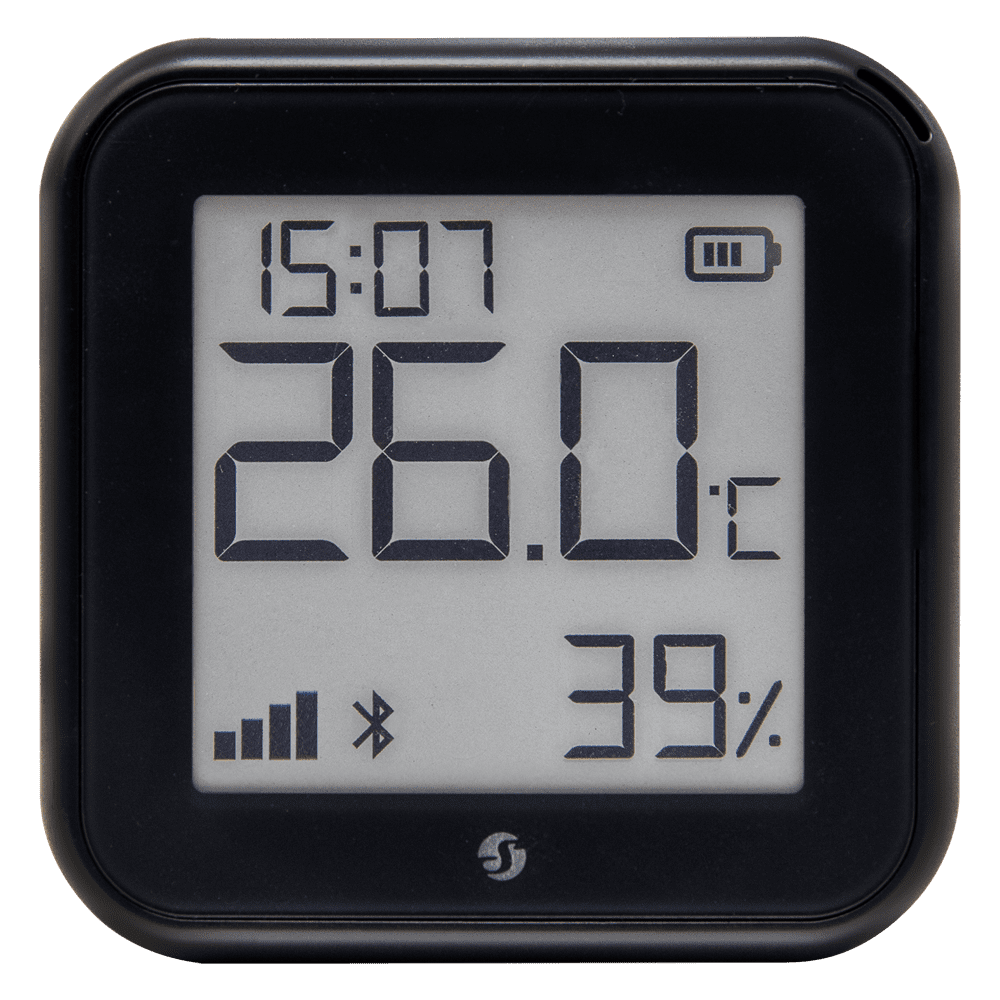 Shelly H&T Gen 3 Preto Mate – WiFi 2.4 GHz IEEE802.11 b/g/n / Bluetooth – Sensor H&T – Ecrã de baixo consumo de energia – Suporta 5V / 4 Pilhas AA – Compatível com Alexa e Google