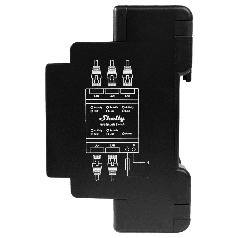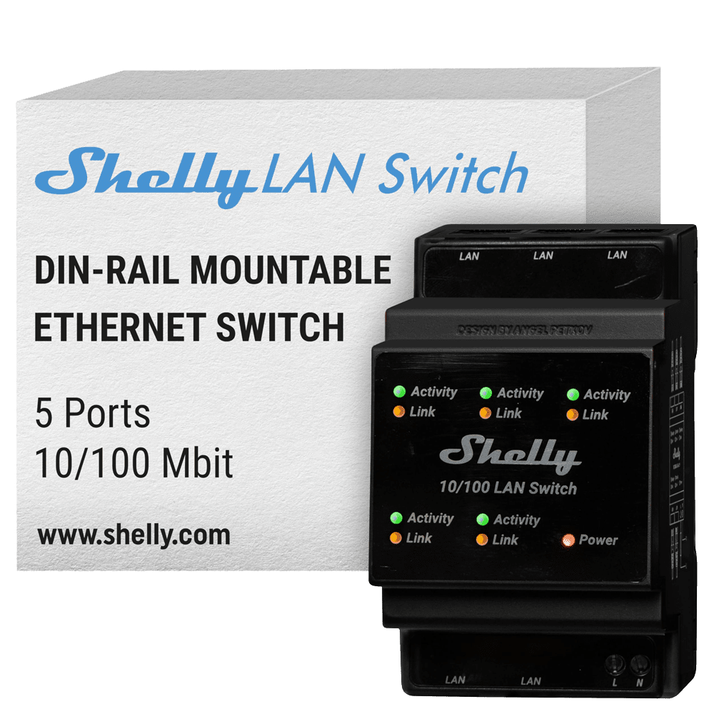 Shelly LAN Switch – Montável em DIN – 5 portas RJ45 – Suporta 110V – 230V – Comutador Ethernet – Alargar as capacidades da sua rede