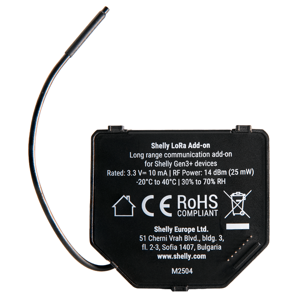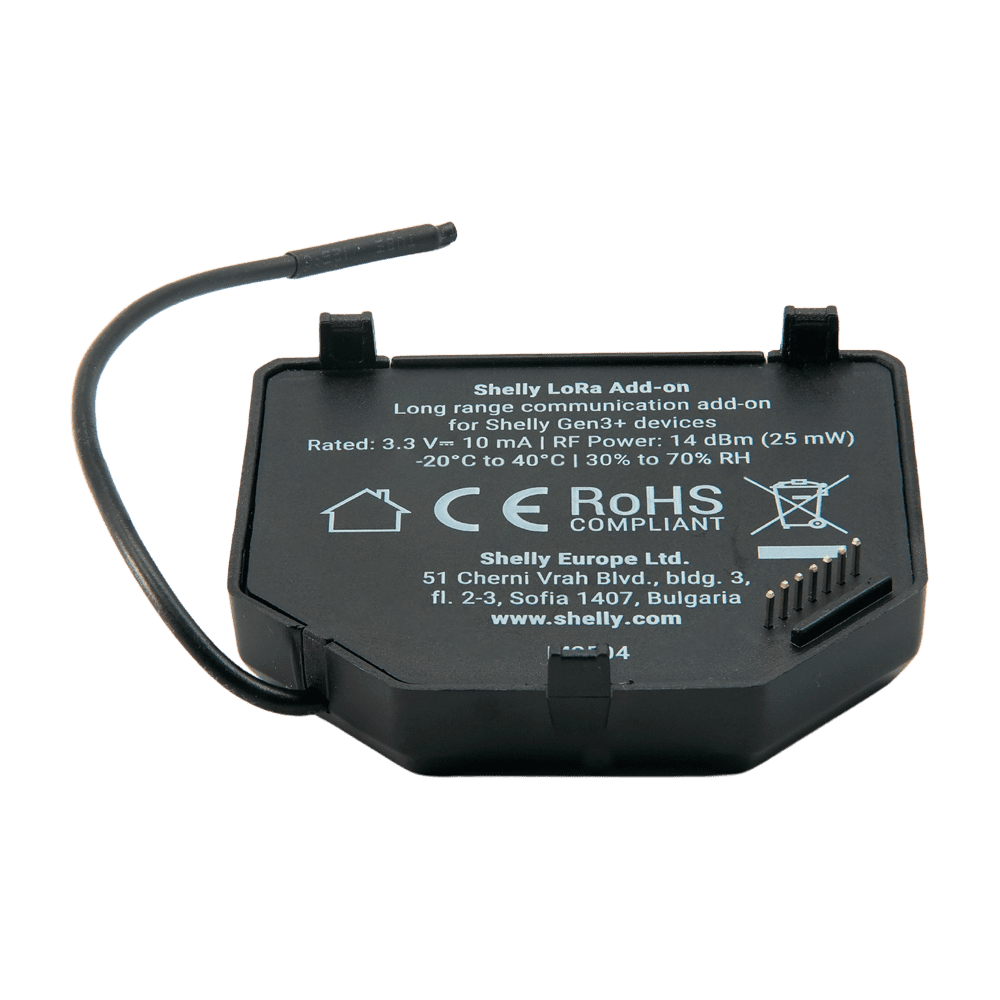 Shelly LoRa Add-on (Pack 2) – Comunicação via LoRa – Compatibilidade com Shelly Gen3 & Gen4 – Longo alcance até 5Km (Utilizando antena externa) – Cor Preta