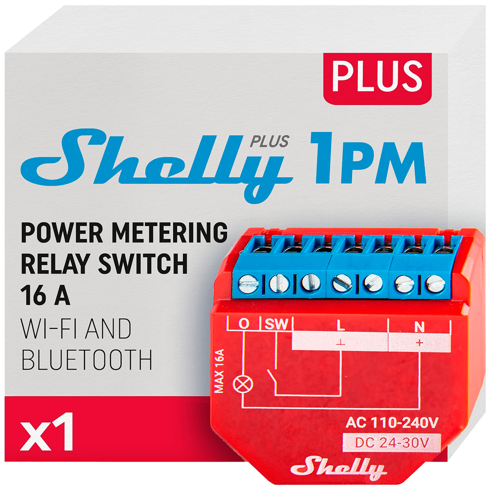 Shelly Plus 1PM – WiFi 2.4 GHz IEEE802.11 b/g/n / Bluetooth – Interruptor inteligente – Suporta 110-240 V / 24V – Medidor de consumo – Compatível com Alexa e Google