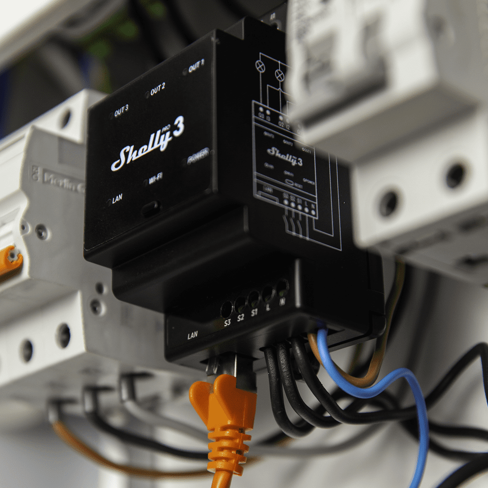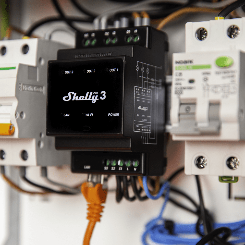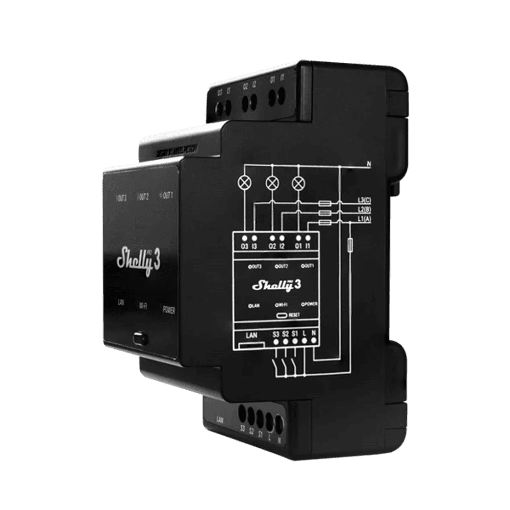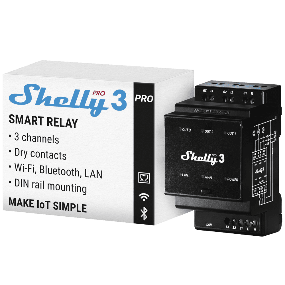 Shelly Pro 3 – WiFi 2.4 GHz IEEE802.11 b/g/n / Bluetooth – Interruptor inteligente para calha DIN – Suporta 110-240 V – Adequado para domótica de vivendas – Compatível com Alexa e Google