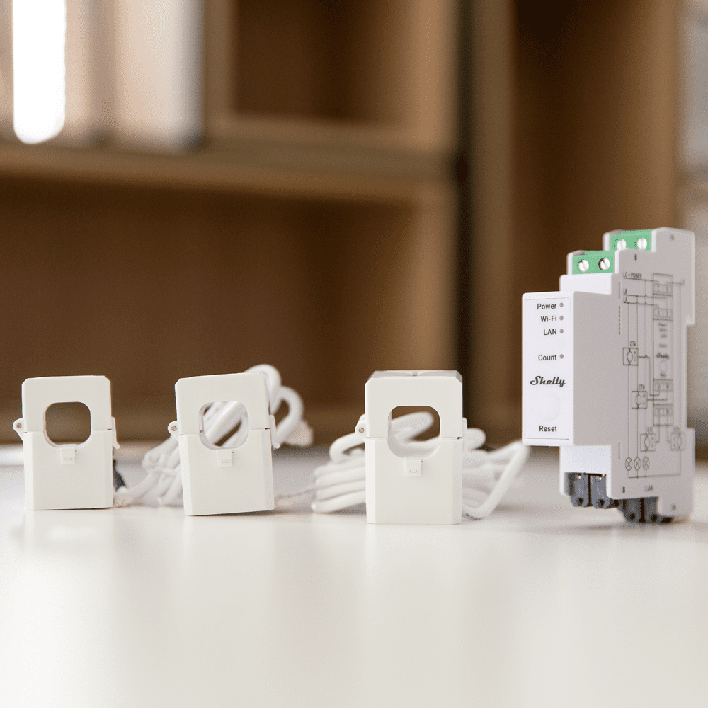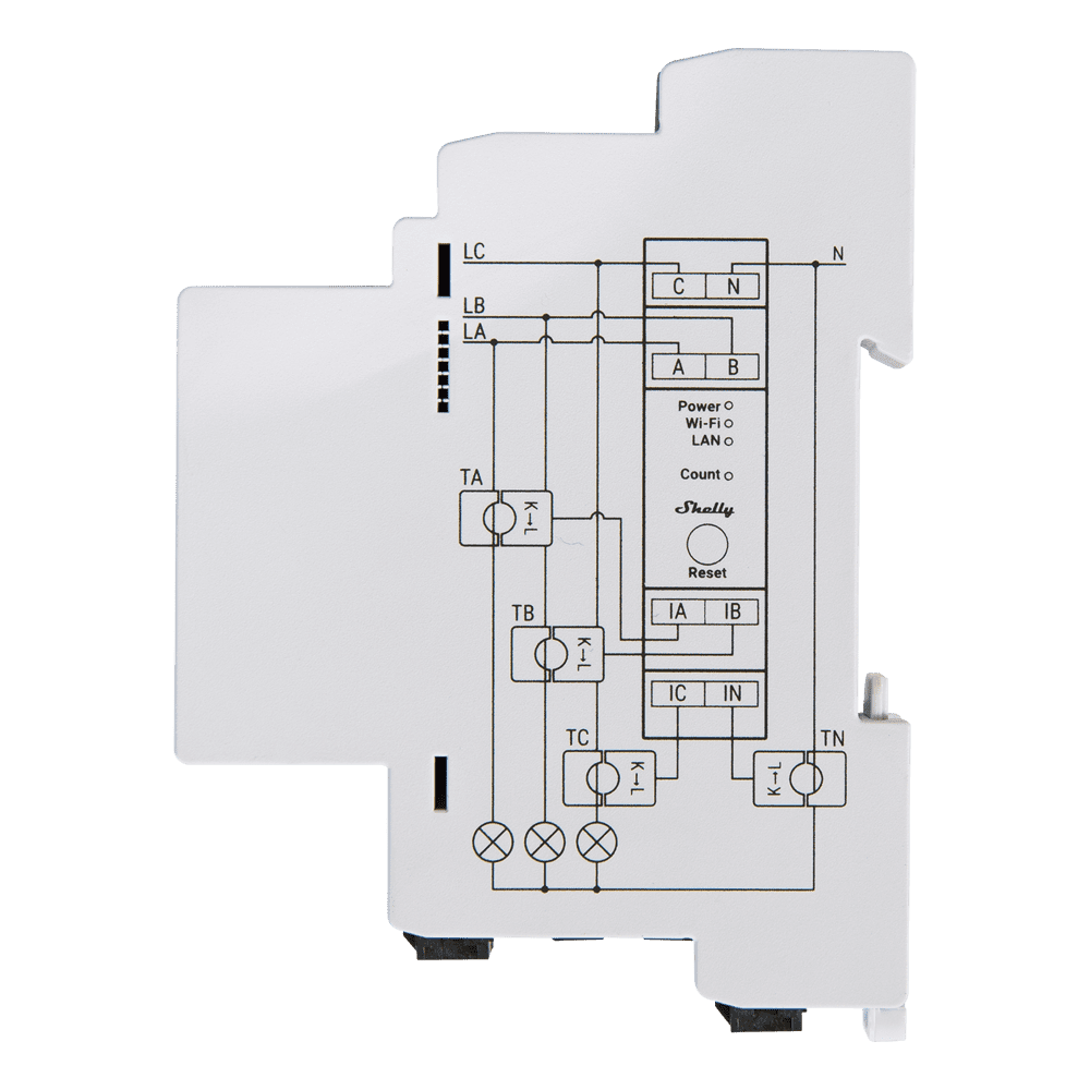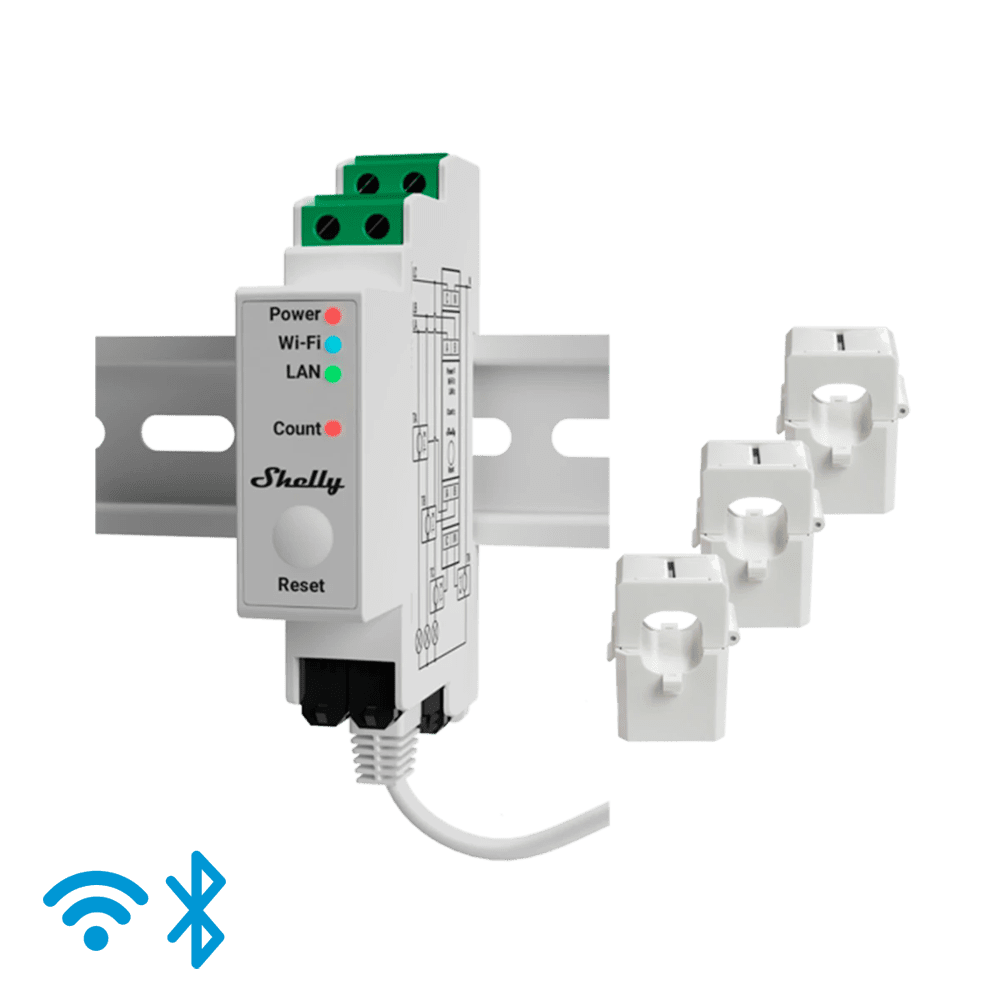Shelly Pro 3EM 120A – WiFi 2.4 GHz / Bluetooth / LAN – Medidor de consumo – Suporta 110-230 V – Ideal para habitação – Compatível com Alexa e Google