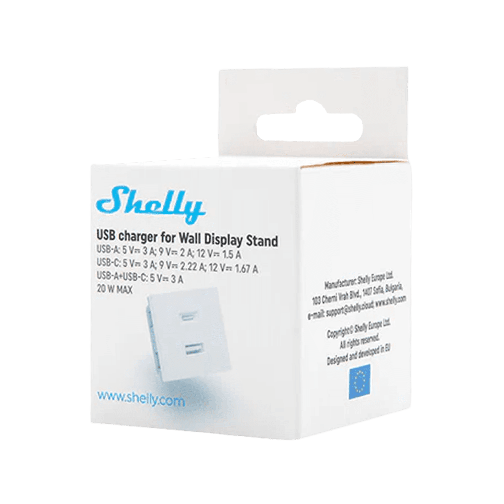 Shelly USB charger for Wall Display Stand White – Carregador USB-A e USB-C – Compatibilidade com Shelly Wall Display Stand – Cor Branca