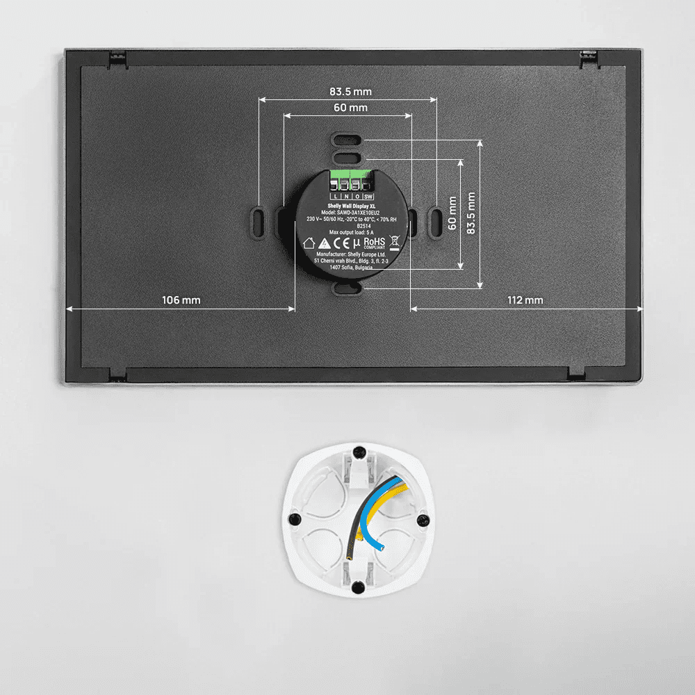 Shelly Wall Display XL Black – Wi-Fi 6 Dual Band / Bluetooth 5.4 – Sensor de iluminação – 4 botões físicos – Gerir o consumo – Compatível com Alexa e Google