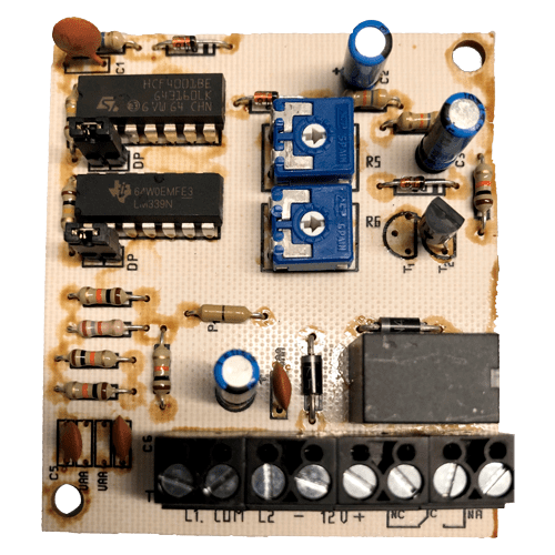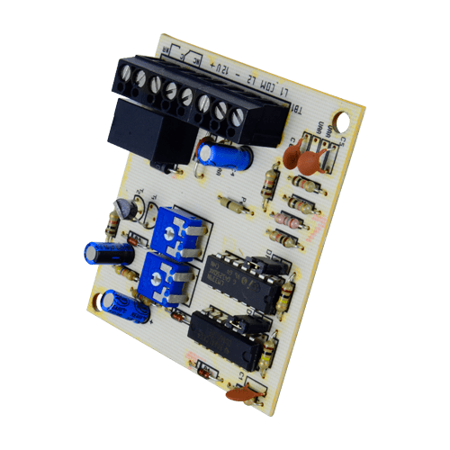 Placa de análise electrónica do FDP – Para detectores de impacto IB5 – 2 entradas (sensibilidade ajustável e independente) – 1 saída de relé NO/NC – Alimentação 12~14 VDC
