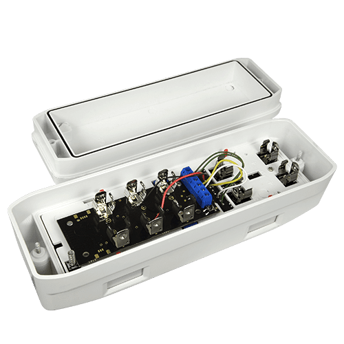 | Configuração do interruptor DIP | Ativação, alcance PIR e AND/OR (independente por cada lado), Modo economia de bateria e LEDs |