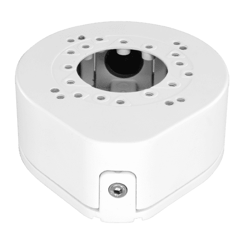 Caixa de conexões – Para câmaras dome – Apto para uso no exterior – Instalação em tecto ou parede – Passador de cabos – Cor branco