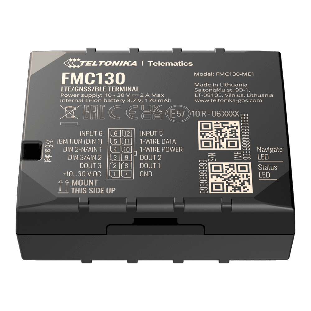 | Configuração e gestão | FOTA Web, Configurador Teltonika (USB e BLE) |
