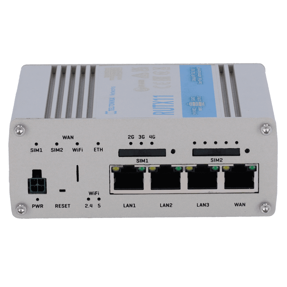 Router industrial 4G LTE Cat 6 até 300 Mbps – Resiliência com Dual SIM e failover automático – Wi-Fi 5 Wave 2 Dual-Band até 867 Mbps – 4 portas Gigabit Ethernet de alta velocidade – Bluetooth 4.0 LE e localização GNSS – VPN avançada: IPsec, OpenVPN e WireGuard