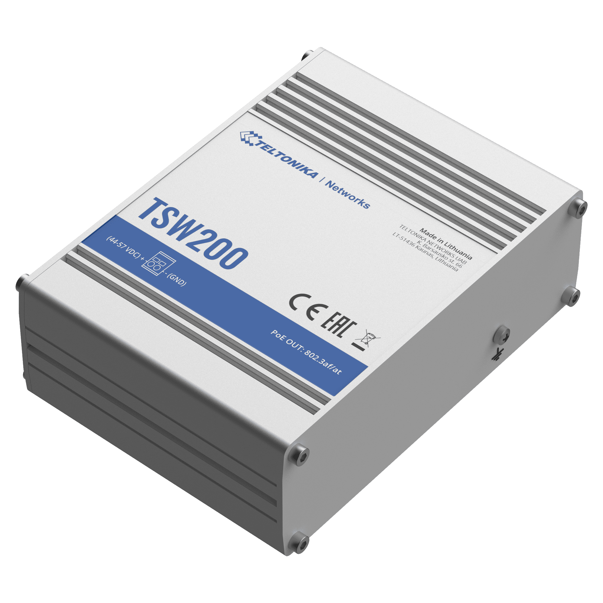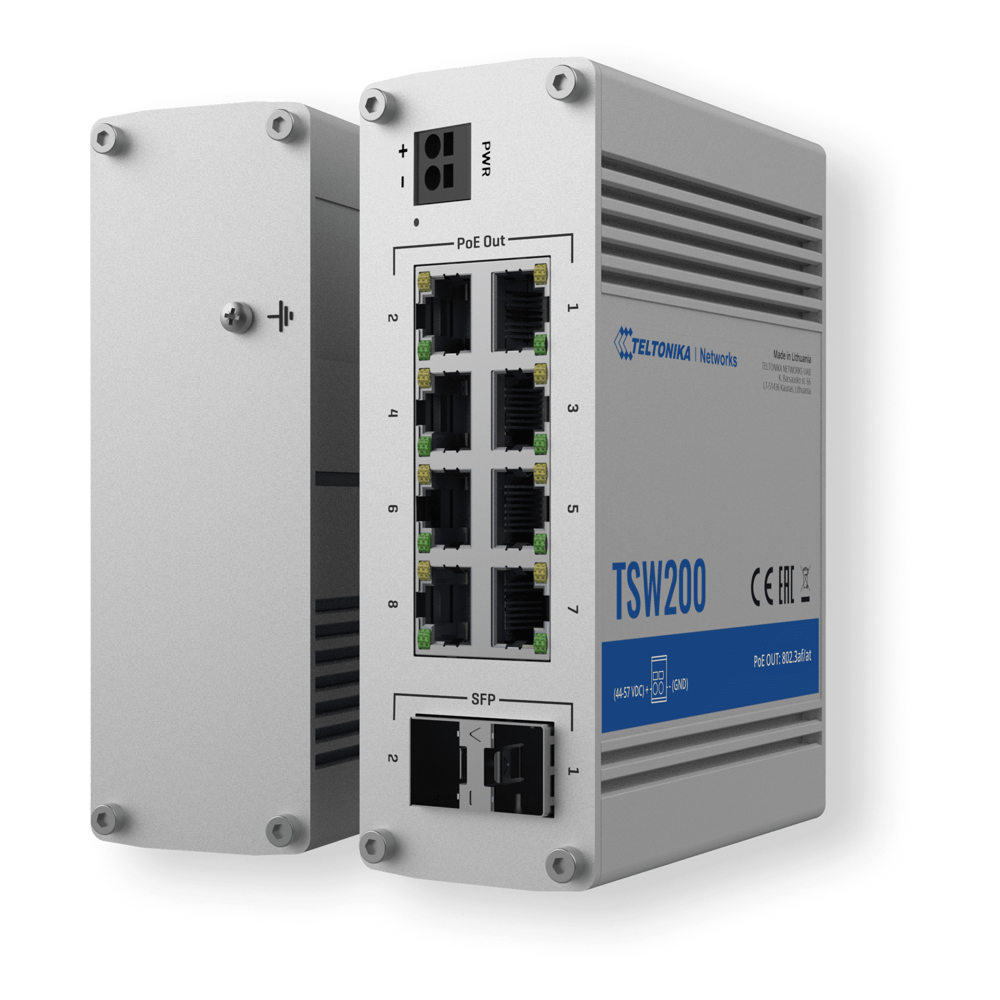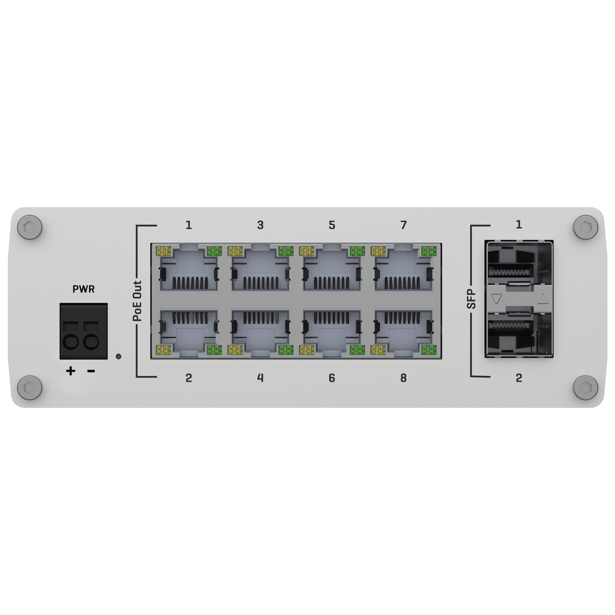 Teltonika Switch PoE não gerenciável Industrial – 8 portas Ethernet RJ45 Gigabit +2 SFP Gigabit – 8 portas Ethernet PoE+ 802.3af/at – Até 30W por Porta PoE – Até 240W de Pptencia POE – Caixa Robusta de Alumínio