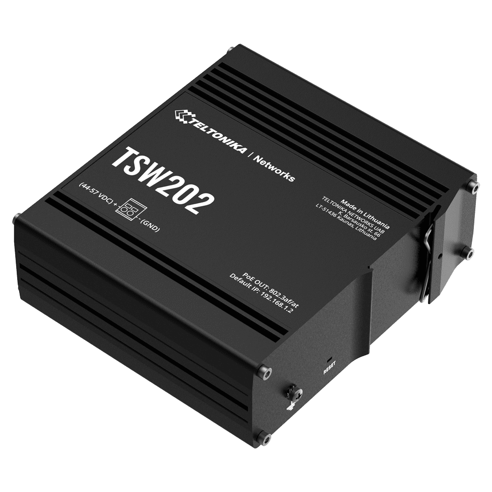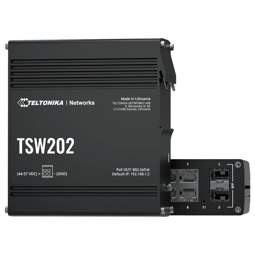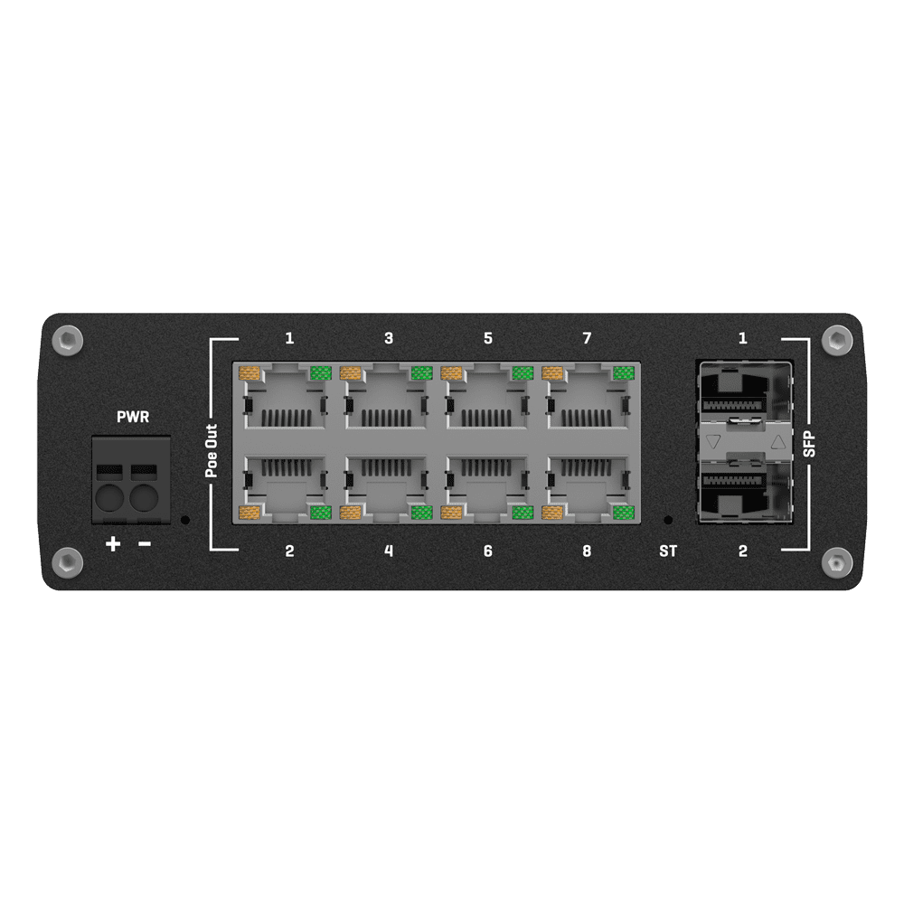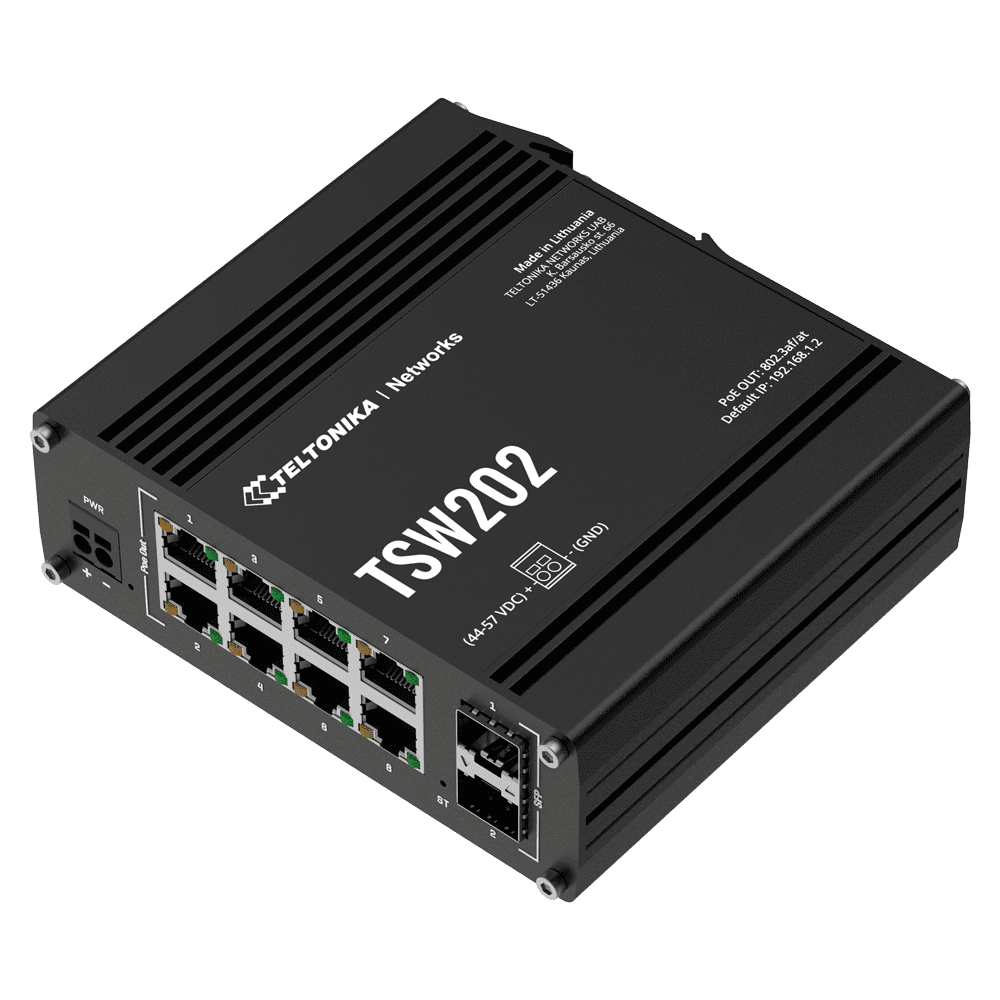 Teltonika Switch PoE Gerenciável Industrial – 8 portas Ethernet RJ45 Gigabit +2 SFP Gigabit – 8 portas Ethernet PoE+ 802.3af/at – Até 30W por Porta PoE – Até 240W de Pptencia POE – Caixa Robusta de Alumínio