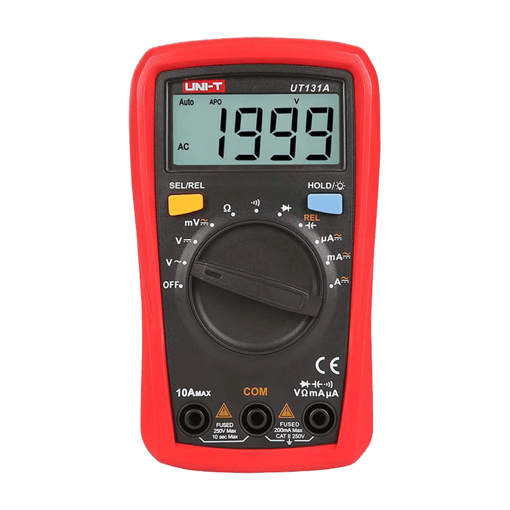 Multímetro digital de mão LCD – Medição de tensão em DC e AC até 250V – Medição de intensidade em DC até 10A – Função NCV (deteção sem contacto V) – Medição de Resistência – Buzzer para teste de continuidade