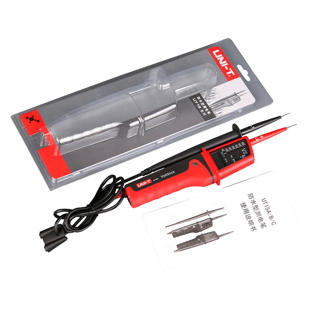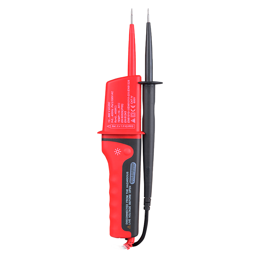 Medidor de tensão tipo lápis com ecrã LCD – Medição da tensão AC e DC – Aviso sonoro e LED visível para continuidade – Impermeável IP65 – Teste de Continuidade – Indicador de fio nulo ou ativo