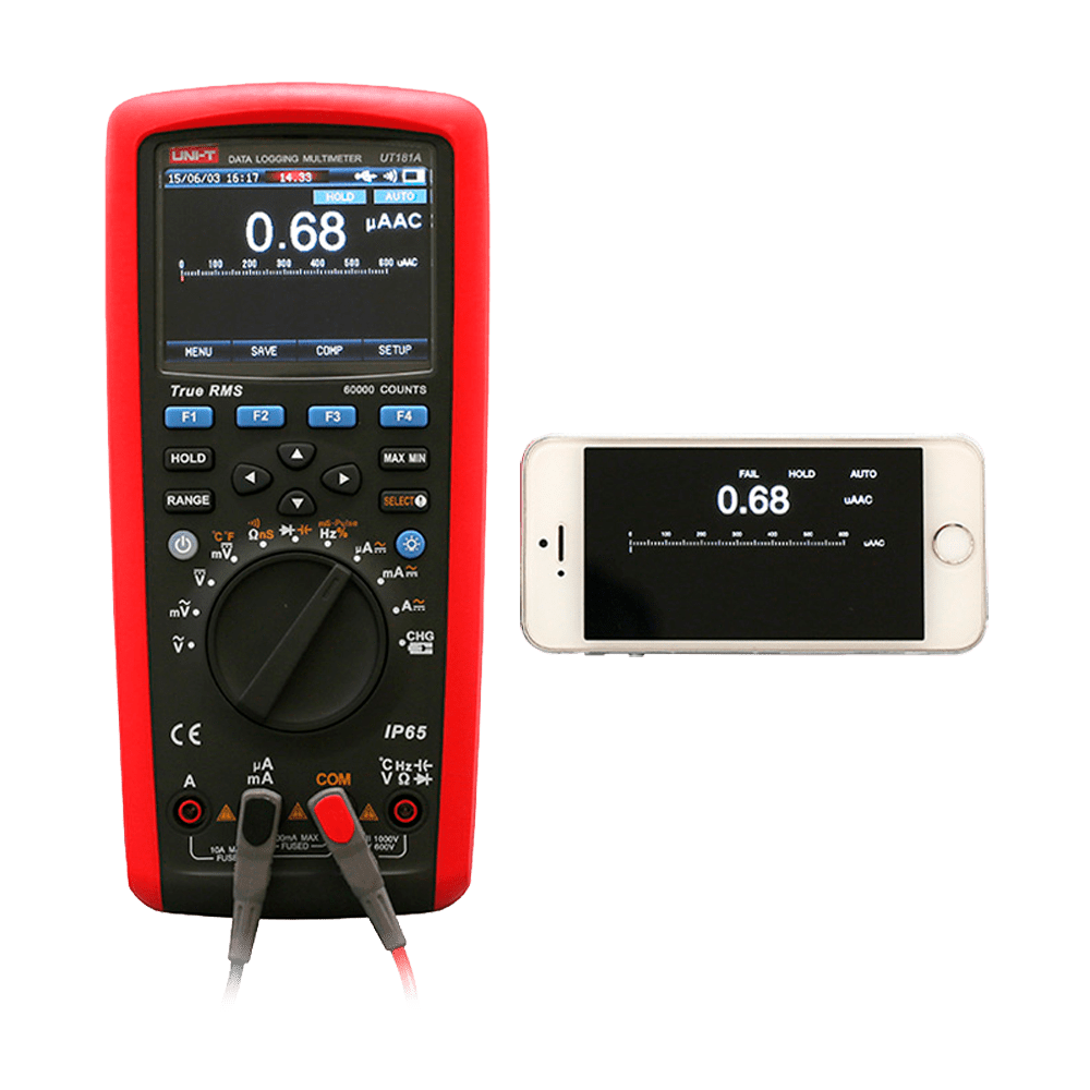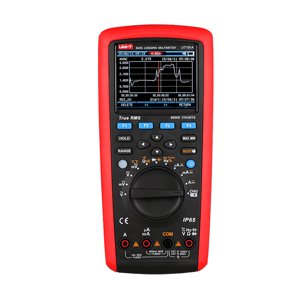 Multímetro de registo de dados True RMS – Ligação ao PC para descarga de dados – Medição AC/DC: a 1000V e 10A – Medição de Resistência, capacitância, condutância – Medição de frequência, temperatura, continuidade – Registo de dados e realização de gráficos