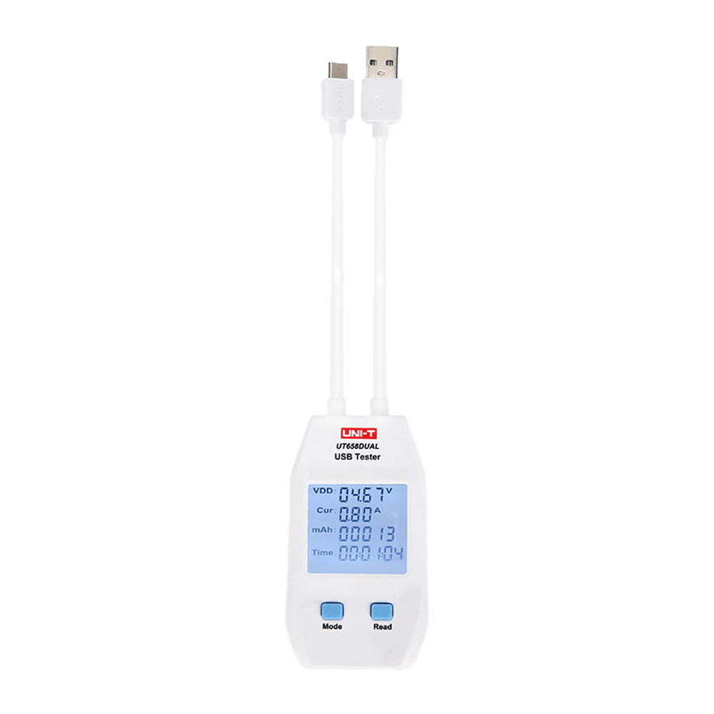 Medidor duplo de corrente e tensão UNI-T – Ligação simples USB tipo A e tipo C – Permite-lhe conhecer a tensão e corrente do dispositivo alimentado – Tensão de entrada 4~24V DC – Corrente máxima 5A – Ecrã de visualização LCD