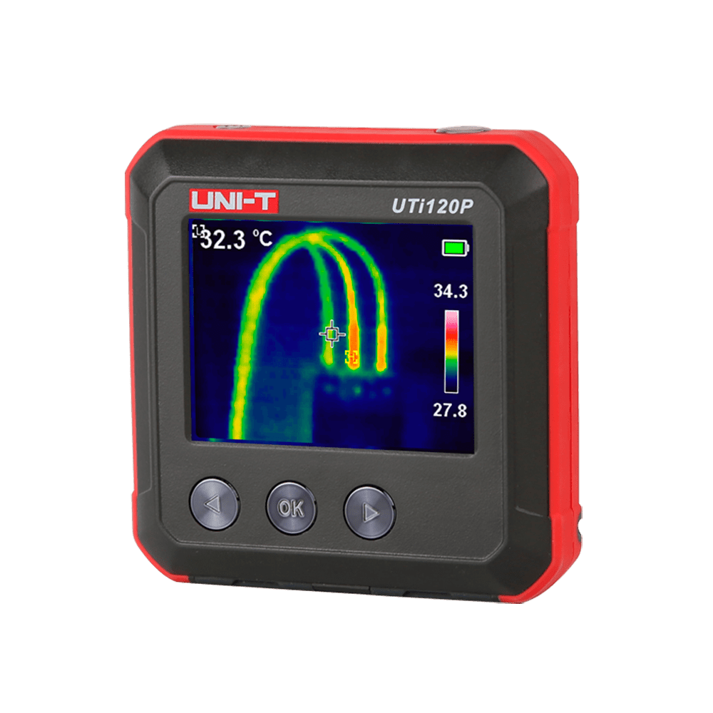 Câmara térmica de bolso – Medição da temperatura em tempo real – Faixa de medição -20º ~ 400ºC – Resolução térmica | 120×90 Precisão ±2ºC – Sensibilidade térmica 60mK – Monitorização de PC