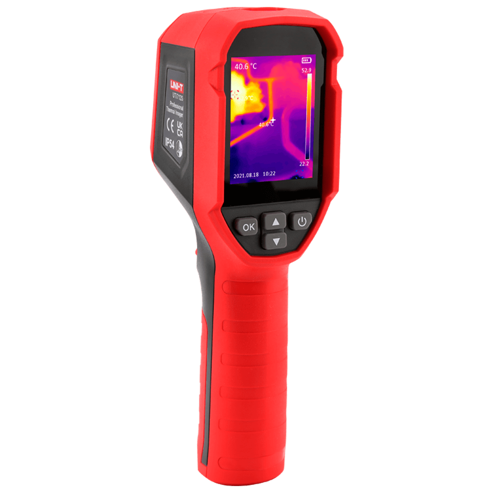 Câmara termográfica portátil 120×90 – Medição da temperatura em tempo real – Faixa de medição -20ºC ~ 400ºC (±2ºC ou ±2%). – Ecrã TFT 2.4″ LCD – Monitorização em monitor externo através de PC