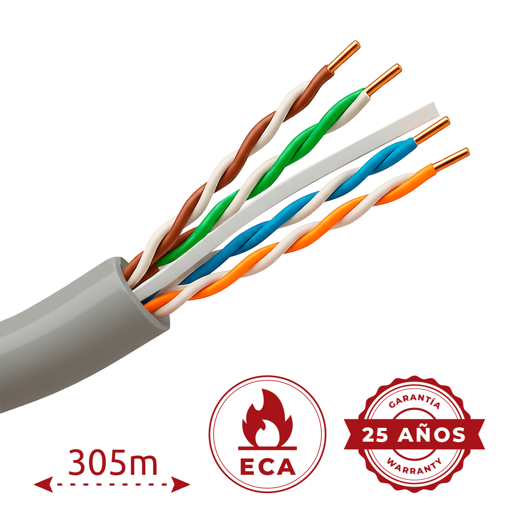 Cabo UTP Safire PVC – Categoria 6 – Atende com 90m Fluke test – Condutor OFC, pureza 99.9% cobre – Bobine de 305 metros – Diâmetro 5.5 mm