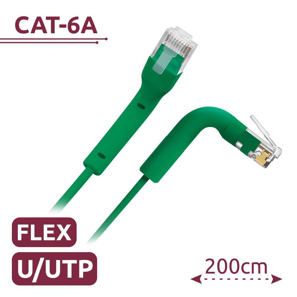 Cabo UTP flexível – Ethernet – Conectores RJ45 – Categoria 6A – 2 m – Cor verde