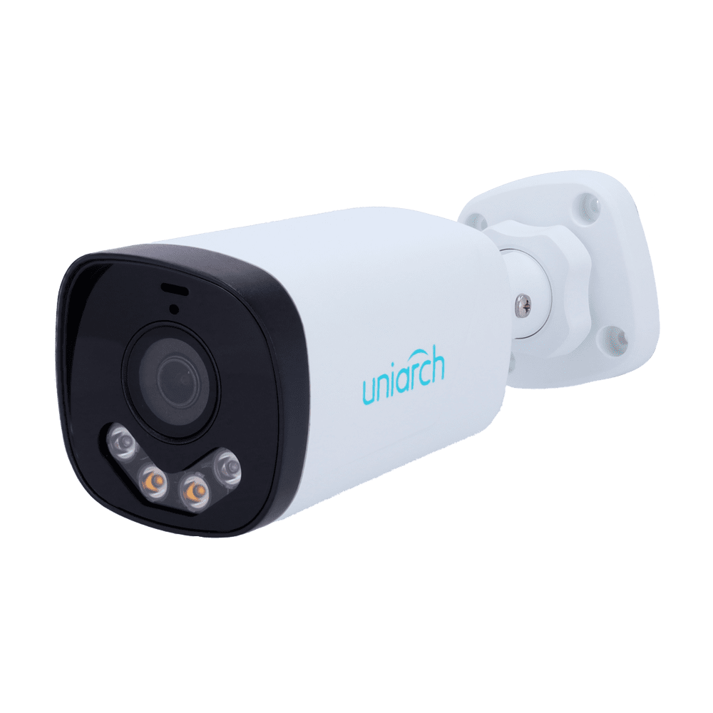 Câmara IP 3 Megapixel – Gama Uniarch – 1/2.7″ Progressive Scan CMOS – Lente 4.0 mm | Microfone incorporado – Alcance dos LEDs IR 50 m | Luz branca 15 m – Intrusão (deteção de corpo humano)