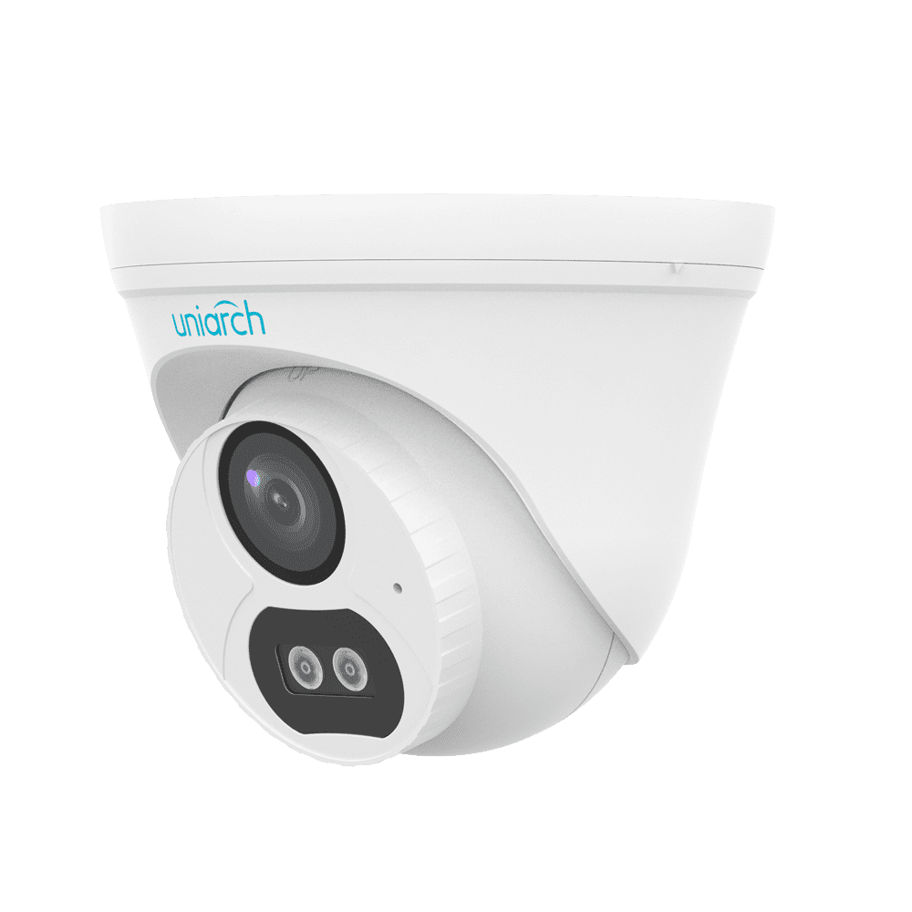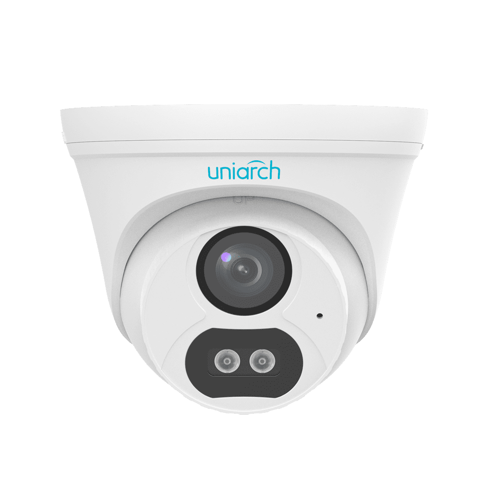 Câmara Turret IP Uniview-Uniarch – 2 MP | Lente 2.8 mm – IV 30 m | Luz branca 15 m | DWRD – Deteção de corpo humano 2.0 – PoE – Microfone integrado