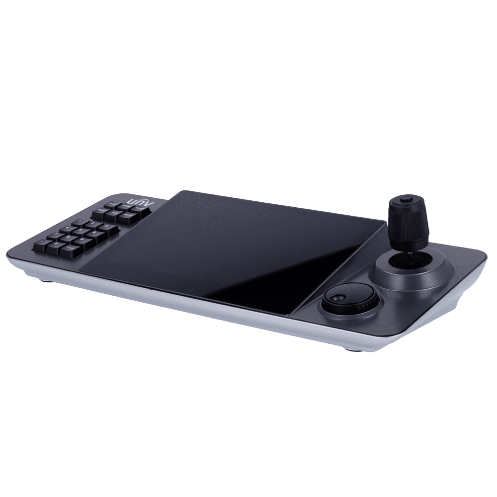Teclado IP Uniview – Ecrã táctil capacitivo 10.1″ (1280×800) – Interface IP/RS-232/RS-485 – Controlo de joystick 4D – Saída HDMI – Exibição de 8 canais simultâneos