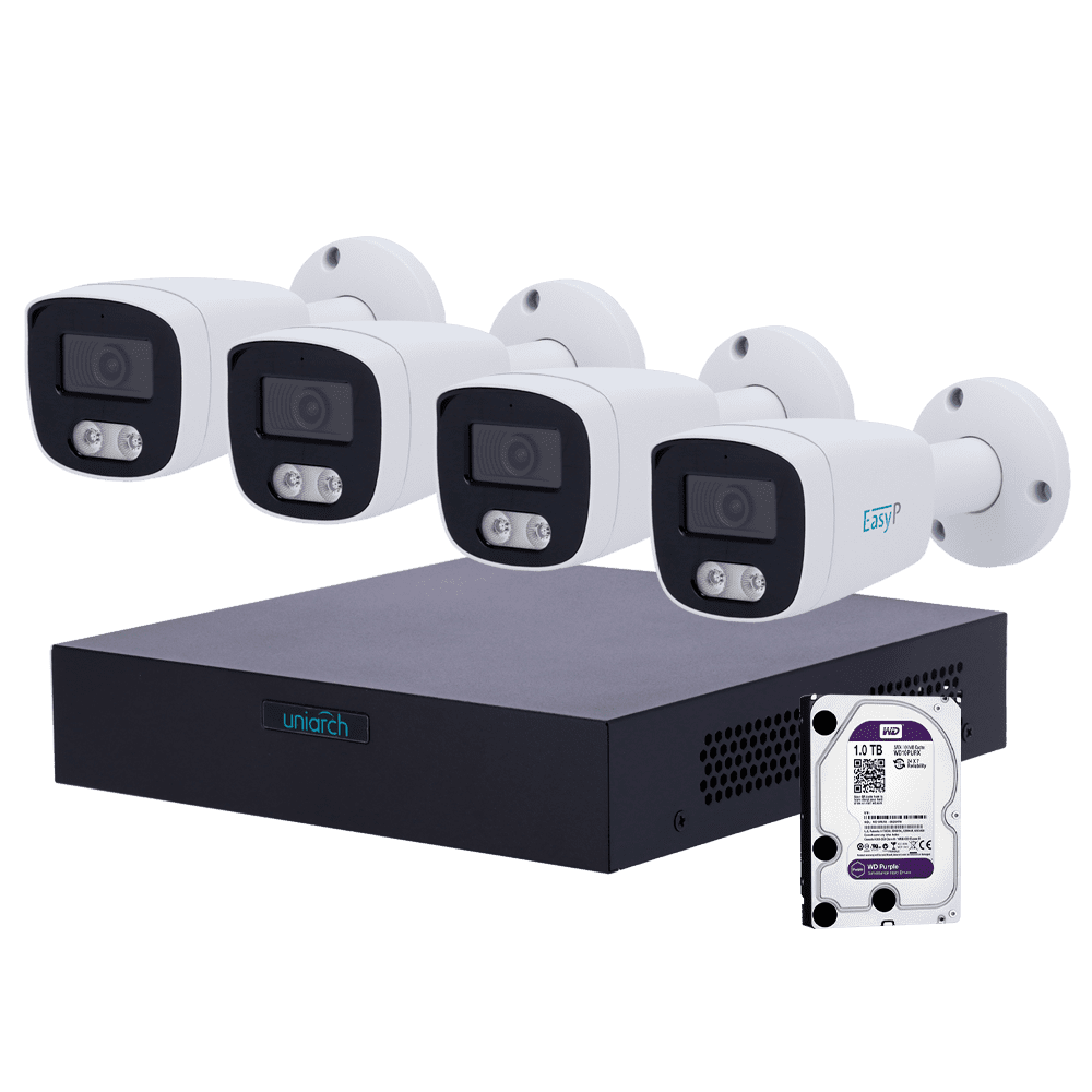 Kit de Videovigilância Uniarch – NVR 8 Canais IP | 1 TB HDD – 4 Câmaras bullet IP67 – Plug & Play | UMD | PoE – Deteção de pessoas e veículos – Interfaz WEB, CMS, Smartphone e NVR