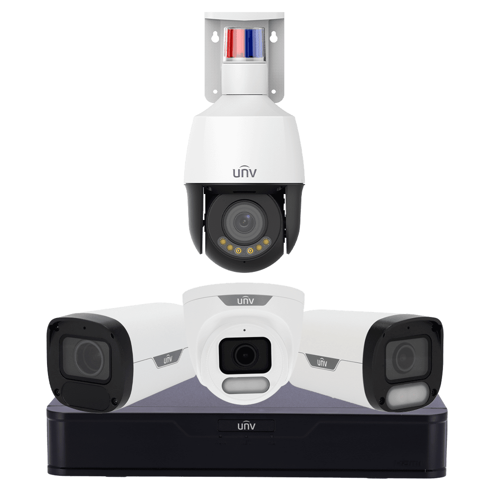 Kit de Videovigilância Uniview – NVR 8CH PoE | AcuSearch | SIP | UMD – Bullet 4 MP Wise-ISP | SIP Lite | 2.8 mm – Turret4 MP Wise-ISP | SIP Lite | 2.8 mm – Bullet 4 MP | Lente varifocal | 2.8~12 mm – PTZ 4MP 5x Wise-ISP Triguard | 2.7~13.5 mm