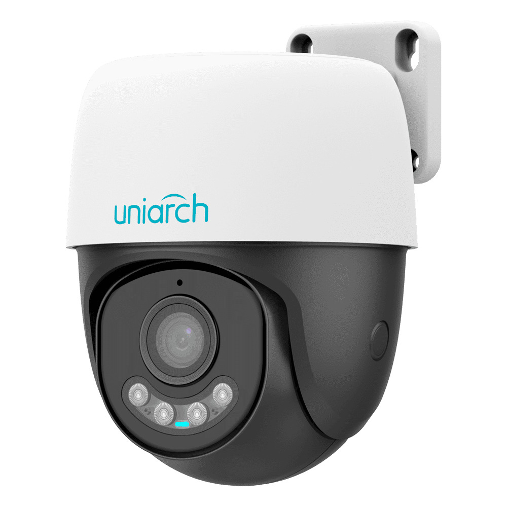 Câmara Dome Uniarch IP – 4 MP | Lente 4 mm | microSD 512 GB – Auto Tracking | Wise-ISP – Luz branca 30 m | DWDR – Wi-Fi | Microfone | Altifalante | IP66