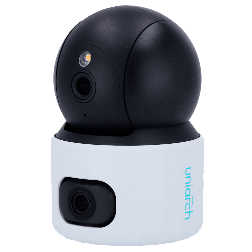 – 3 MP | 2 x 4 mm | microSD 512 GB – IR 10 m | Luz branca 10 m – Câmara panorâmica + Câmara PT – UMD | Deteção de choro e de animais domésticos – Áudio bidireccional: Microfone e altifalante
