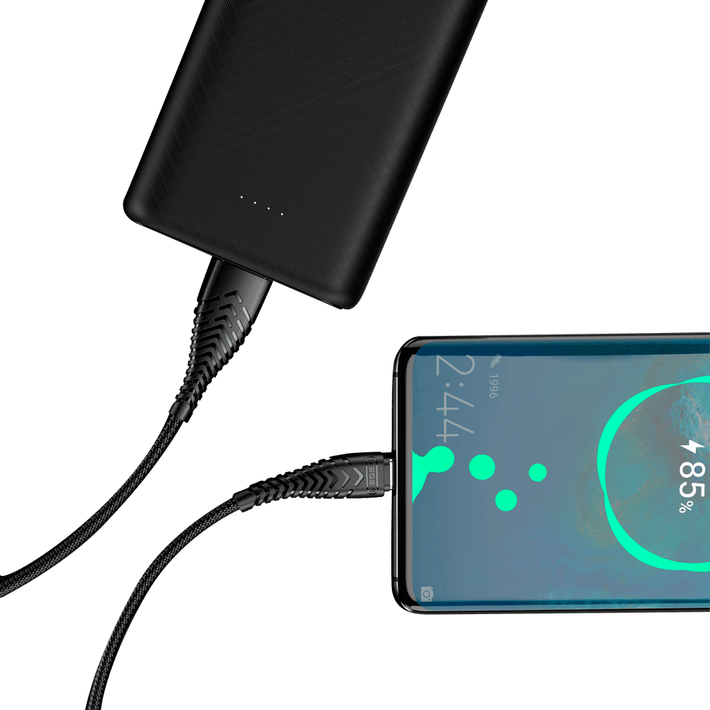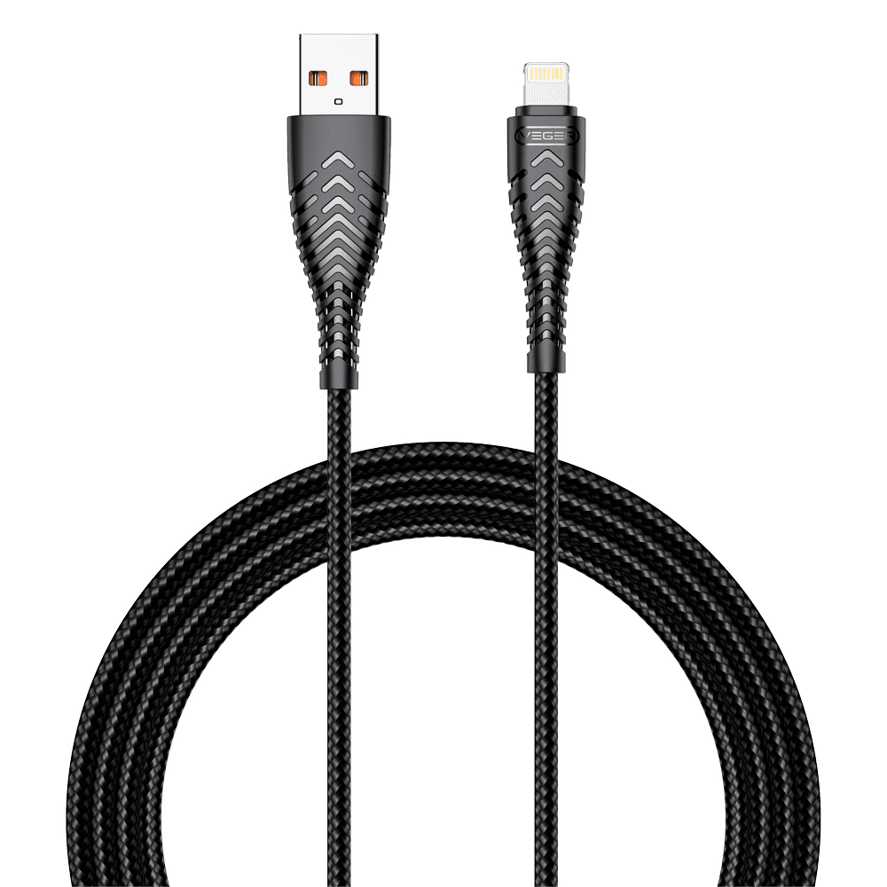 Veger – Cabo USB2.0 – USB-A para Lightning – Revestimento metálico, Nylon trançado – Comprimento 1.2m – Cor preto