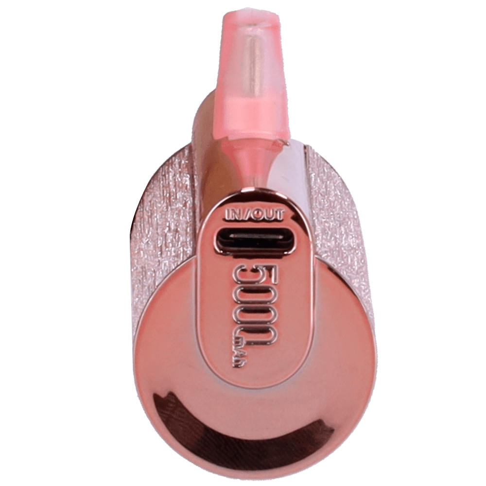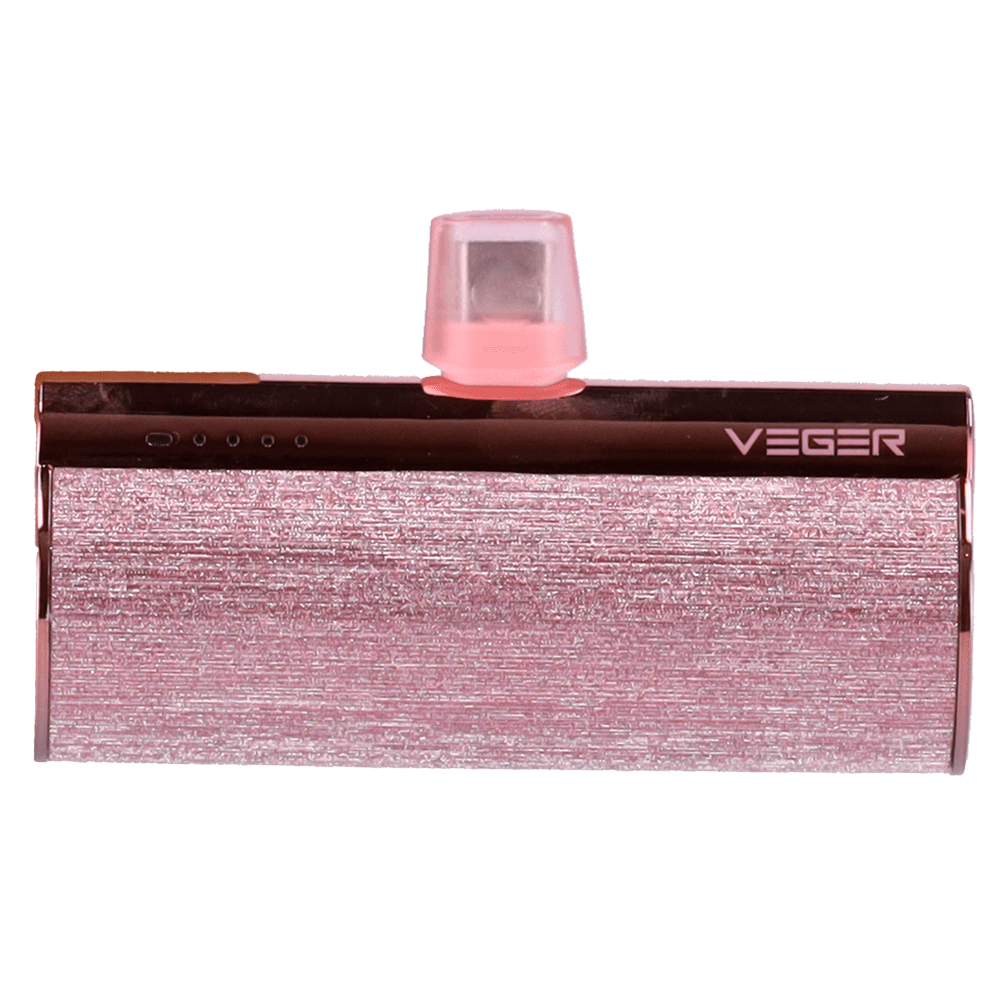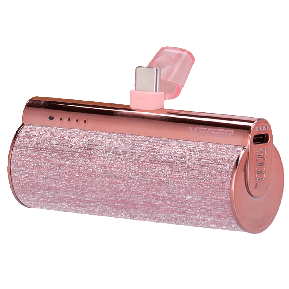 VEGER Mini Power bank com LEDs para carregamento – Capacidade 5000mAh – Entrada da porta USB-C – Porta USB-C de saída, conetor USB-C – Carrega 1 dispositivo – Rosa metalizado