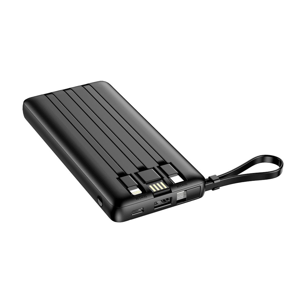 | Conectores | Entradas: 1x Cabo USB-A 5V-2A (10W) 1x Porta USB-C 5V-2.4A (12W) Saídas: 1x Porta USB-C 5V-2.4A (12W) 1x Cabo USB-C 5V-2.4A (12W) 1x Porta USB-A 5V-2.4A (12W) 1x Microcable USB 5V-2.4A (12W) 1x Cabo Lightning 5V-2.4A (12W) |