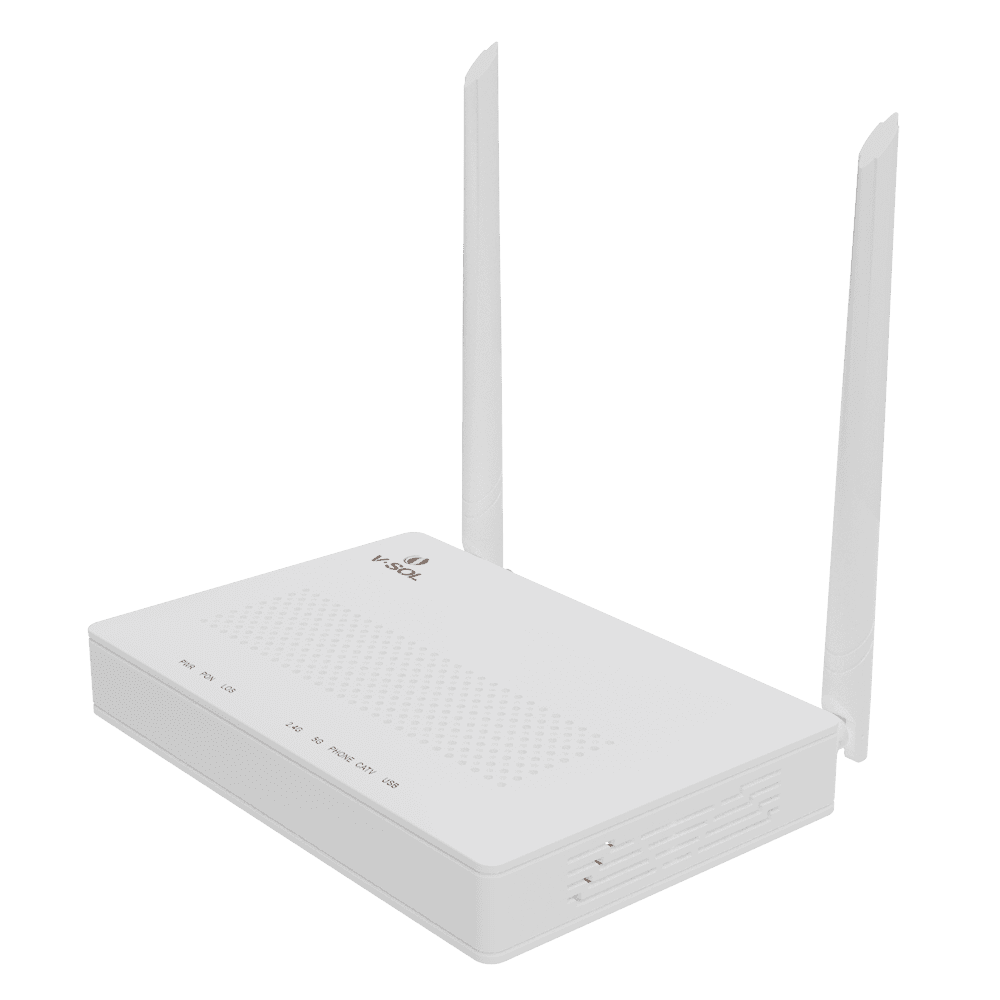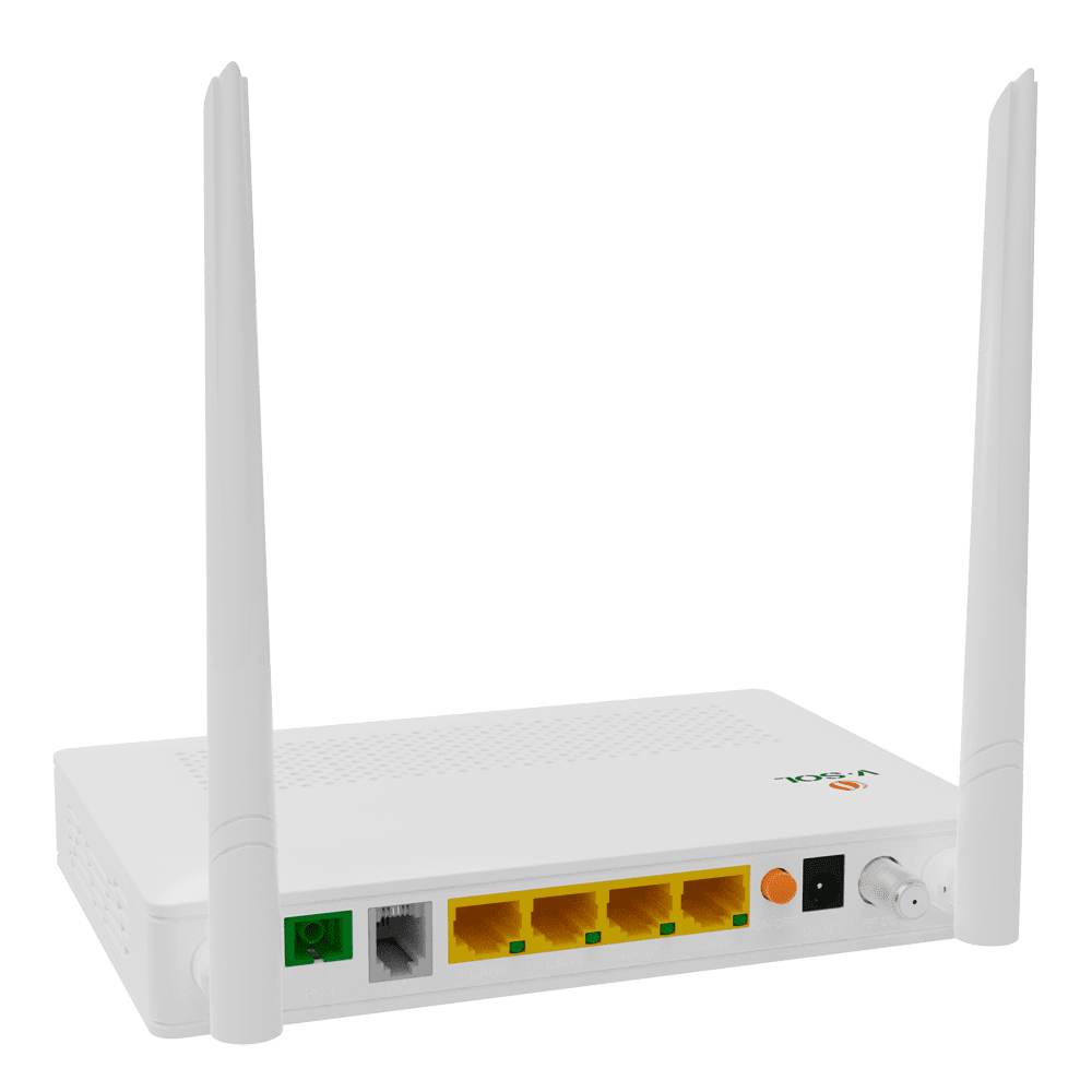 V-SOL Router ONT Wi-Fi 5 – 1X PON 4x LAN RJ45 GE 1x RJ11 1x CATV – 802.11ac 2×2 de banda dupla 2.4 e 5GHz – Ideal para FTTH doméstico e empresarial