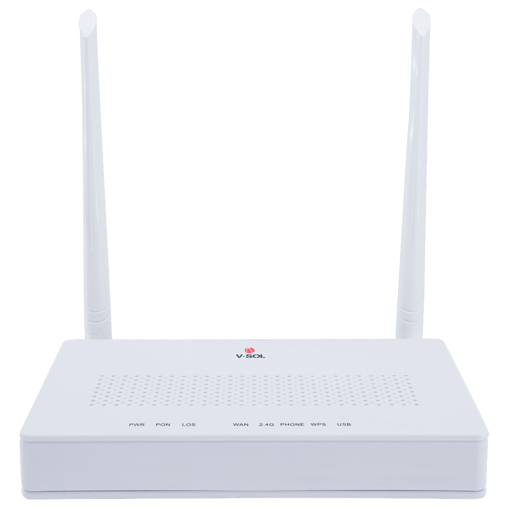 V-SOL Router ONT Wi-Fi 4 – 1X PON 4x LAN RJ45 10/100/1000Mbps 1x RJ11 – 802.11 b/g/n – Ideal para FTTH doméstico e empresarial