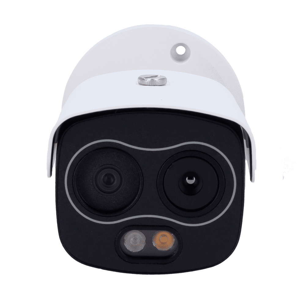 Câmara Térmica Bullet IP Dupla X-Security – 256×192 VOx | Lente 7 mm | Sensibilidade 40mK – Sensor óptico 1/2.7 4 Mpx | Lente 8 mm – WizSense, com classificação de pessoas e veículos – Deteção de fumo e calor – Áudio | Alarmes | MicroSD | PoE