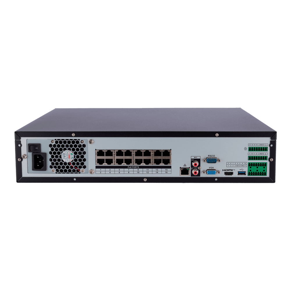X-Security NVR – Resolução máxima 16 Megapixel – 32 CH / 16 portas PoE af/at – Compressão H.265 / H.264 | 8 HDD – Saída HDMI 4K | Saídas de alarme – SMD, WizSense e QuickPick