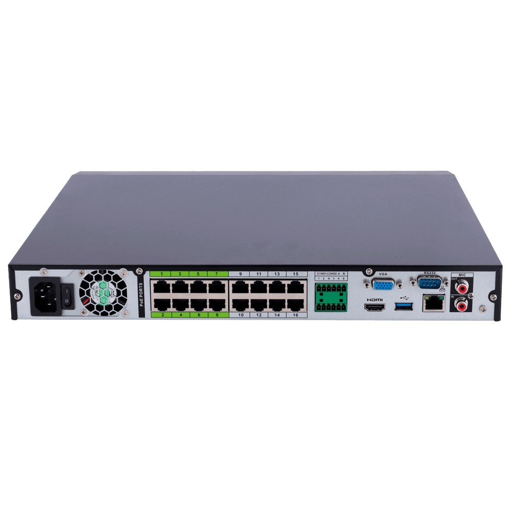 Gravador X-Security NVR para câmaras IP – Resolução máxima 12 Megapixel – Compressão SmartH.265+ / Smart H.264+ – 16 CH IP ,16 Portas PoE – 4 Ch Reconhecimento facial ou 16Ch AI – WEB, DSS/PSS, Smartphone e NVR