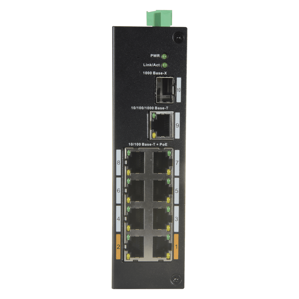 Switch PoE X-Security – 8 portas PoE + 1 Uplink RJ45 – Velocidade 10/100 Mbps – Potência 30 W por porta – Potência máxima total 96 W – Norma IEEE802.3at (PoE) / af (PoE+)