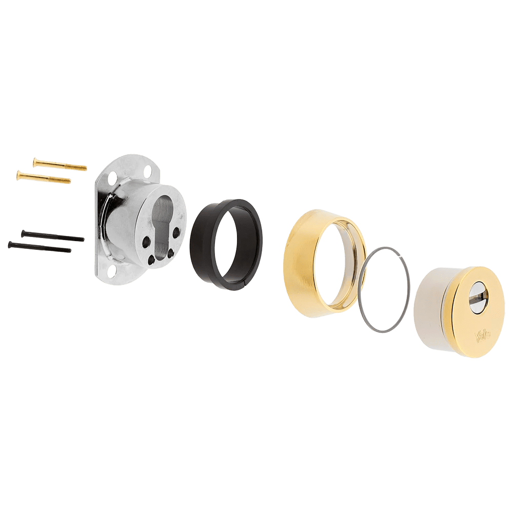 Escudo de alta segurança Nexus – Antiquebra, extração, perfuração e fixação – Núcleo de aço maciço – Incrustações de esferas de aço – Fixação com 4 parafusos – Cor dourada