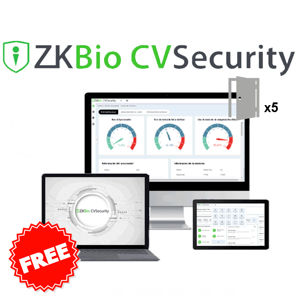 Licença de software para controlo de acesso – Módulo base de controlo de acesso – 5 portas – Utilizadores, horários e grupos de acesso – Capacidades, anti-passback e ligações globais – Compatível com dispositivos ZKTeco (Push/Pull)